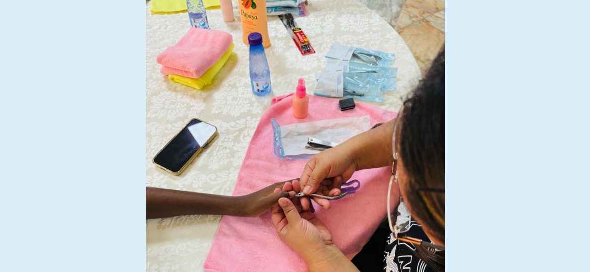 حيث قدم المركز مجموعة من الخدمات للمستفيدات أهمها العناية بالأظافر وقص وتصفيف الشعر.