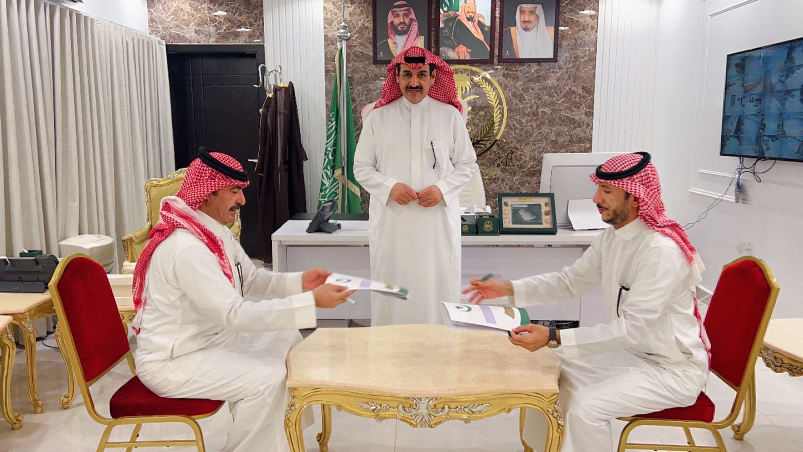 تم هذا اليوم الاثنين الموافق 1446/2/8 وبمكتبه توقيع عقد شراكة مجتمعية لكلاً من :