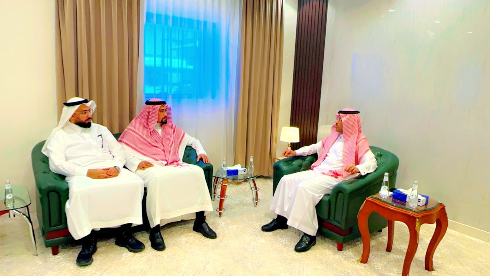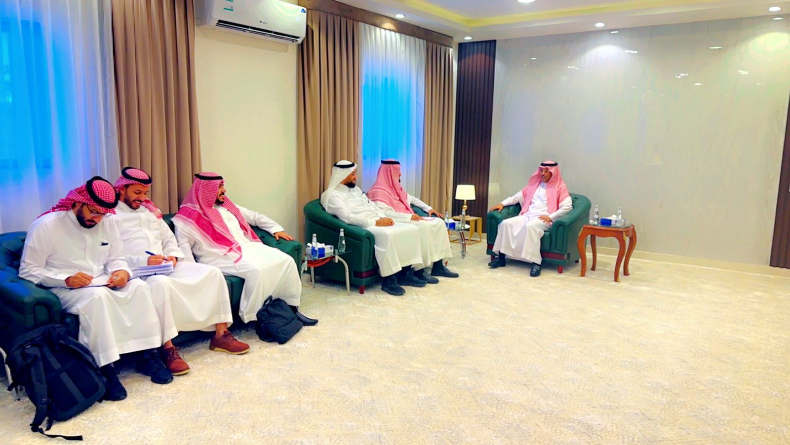 في بداية اللقاء رحب بهم سعادته ومن ثم مناقشة المشاريع التنموية بالمحافظة وما تحظى به المحافظة من تطوير ومتابعة من صاحب السمو الملكي أمير المنطقة حفظة الله.