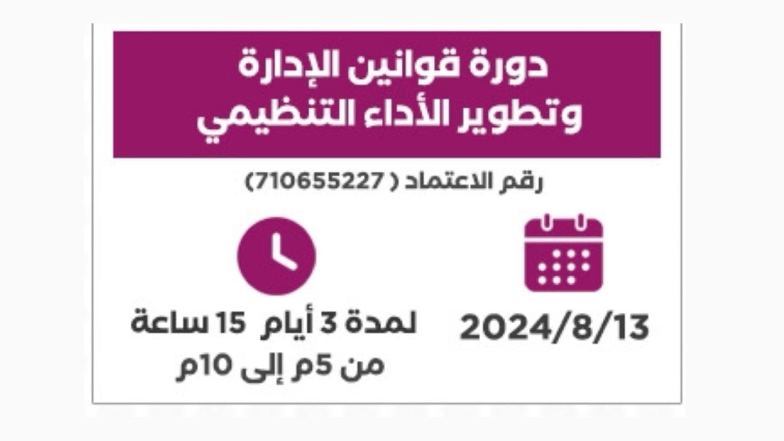 حيث أقيمت الدورة يوم الاثنين 12 أغسطس (عن بُعد) وتستمر لمدة 3 أيام، ويقدمها المستشار أحمد بدوي.