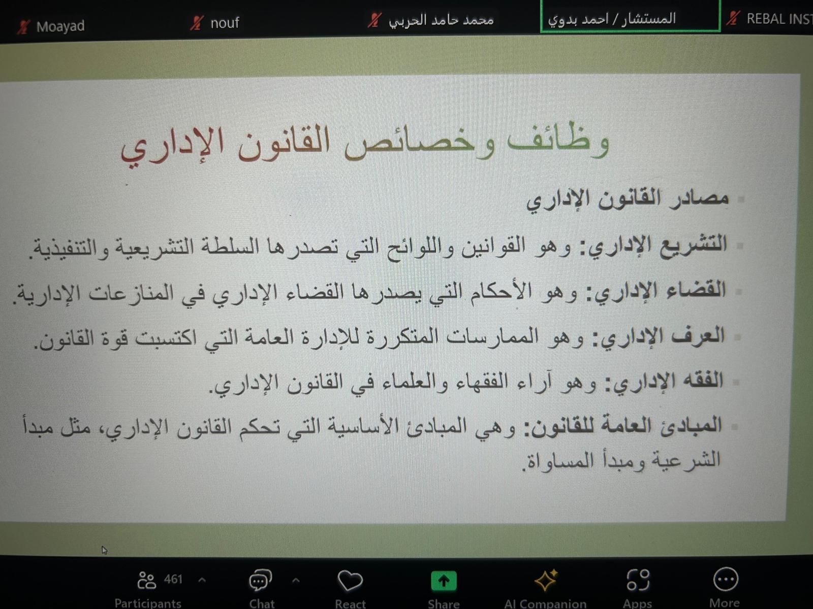 كما تناولت الدورة شرحًا وافيًا لمصادر القانون الإداري، بما في ذلك التشريع الإداري، القضاء الإداري، العرف الإداري، والفقه الإداري، إلى جانب المبادئ العامة للقانون.