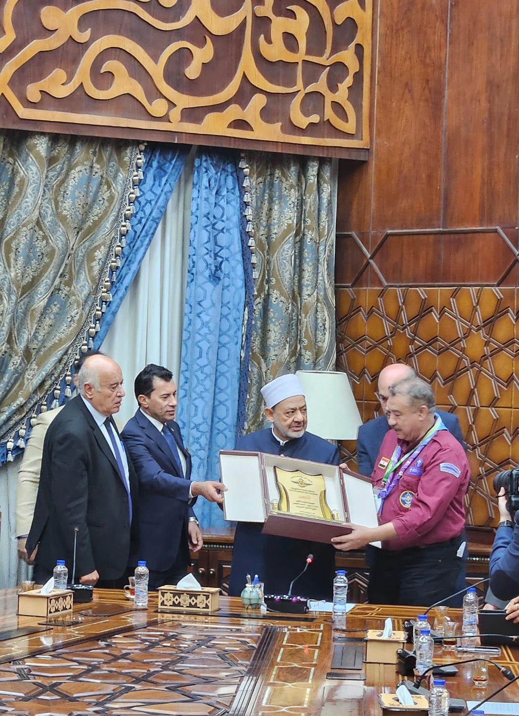 حيث تم التعريف لفضيلته بأنشطة وبرامج الاتحاد العالمي للكشاف المسلم ، كما تم إعطائه فكرة عن دور الاتحاد بالتعريف عن الوسطية وأن الإسلام دين سلام ، وكذلك دوره في التعريف بالدين الاسلامي للكشافين الغير مسلمين و التعريف بالمؤتمر العالمي الذي استضافته مصر والمكون من176 دولة.