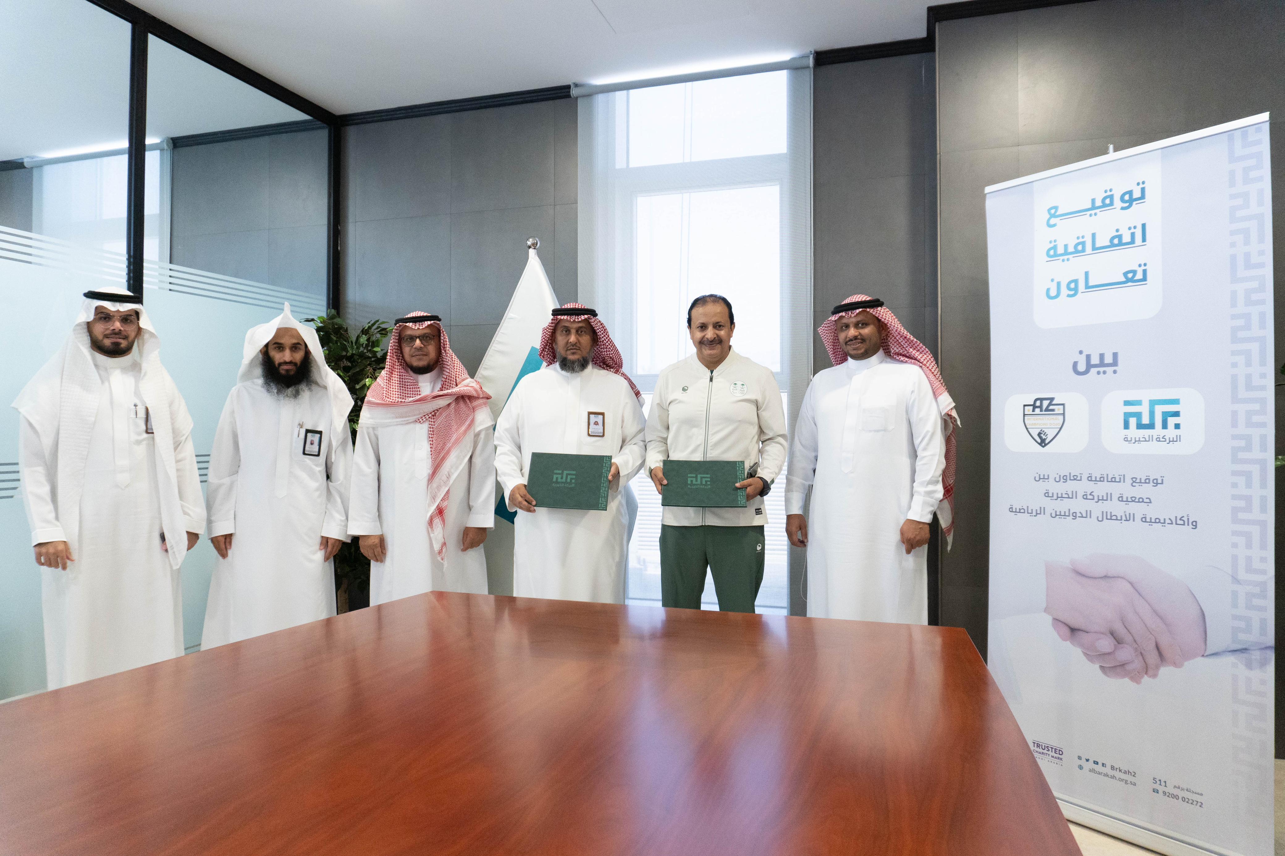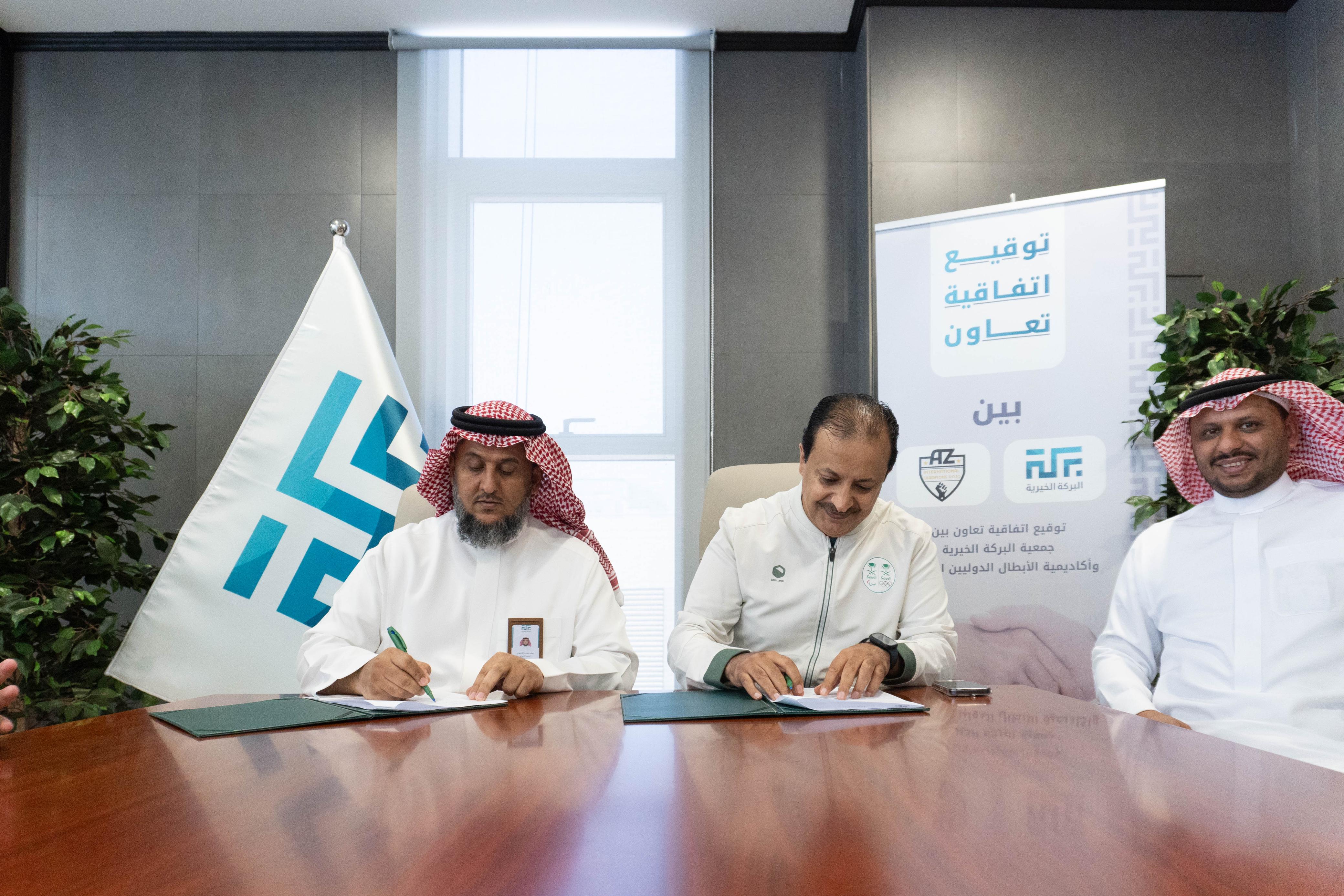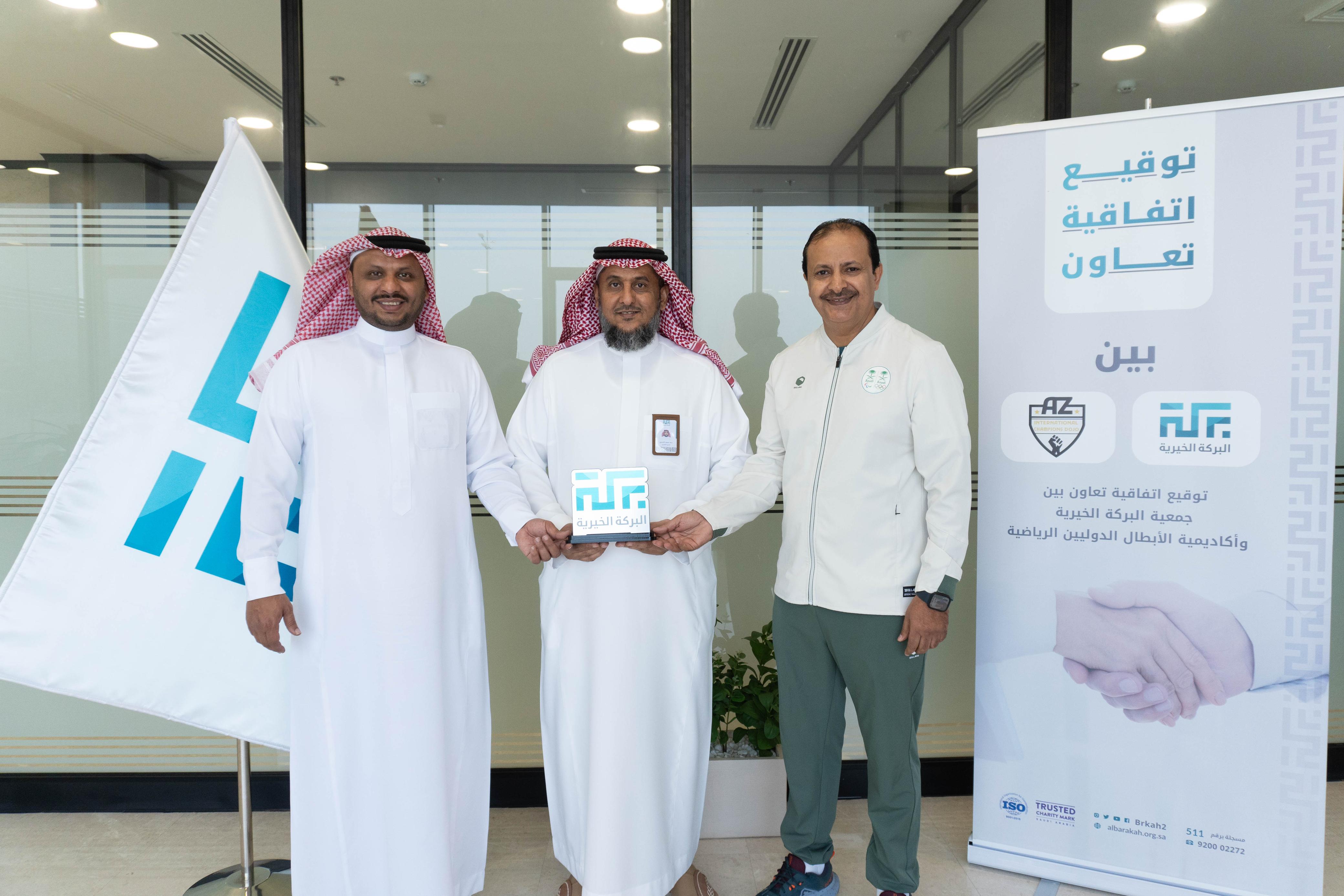 وقع المدير التنفيذي لجمعية البركة الخيرية الأستاذ سعد بن محمد الأحمري موخراً اتفاقية تعاون وشراكة مع أكاديمية الأبطال الدوليين الرياضية ممثلة برئيس رابطة المدربين المدرب الاستاذ علي بن مسفر الزهراني وشريكه المدرب الاستاذ أحمد بن علي الغامدي.