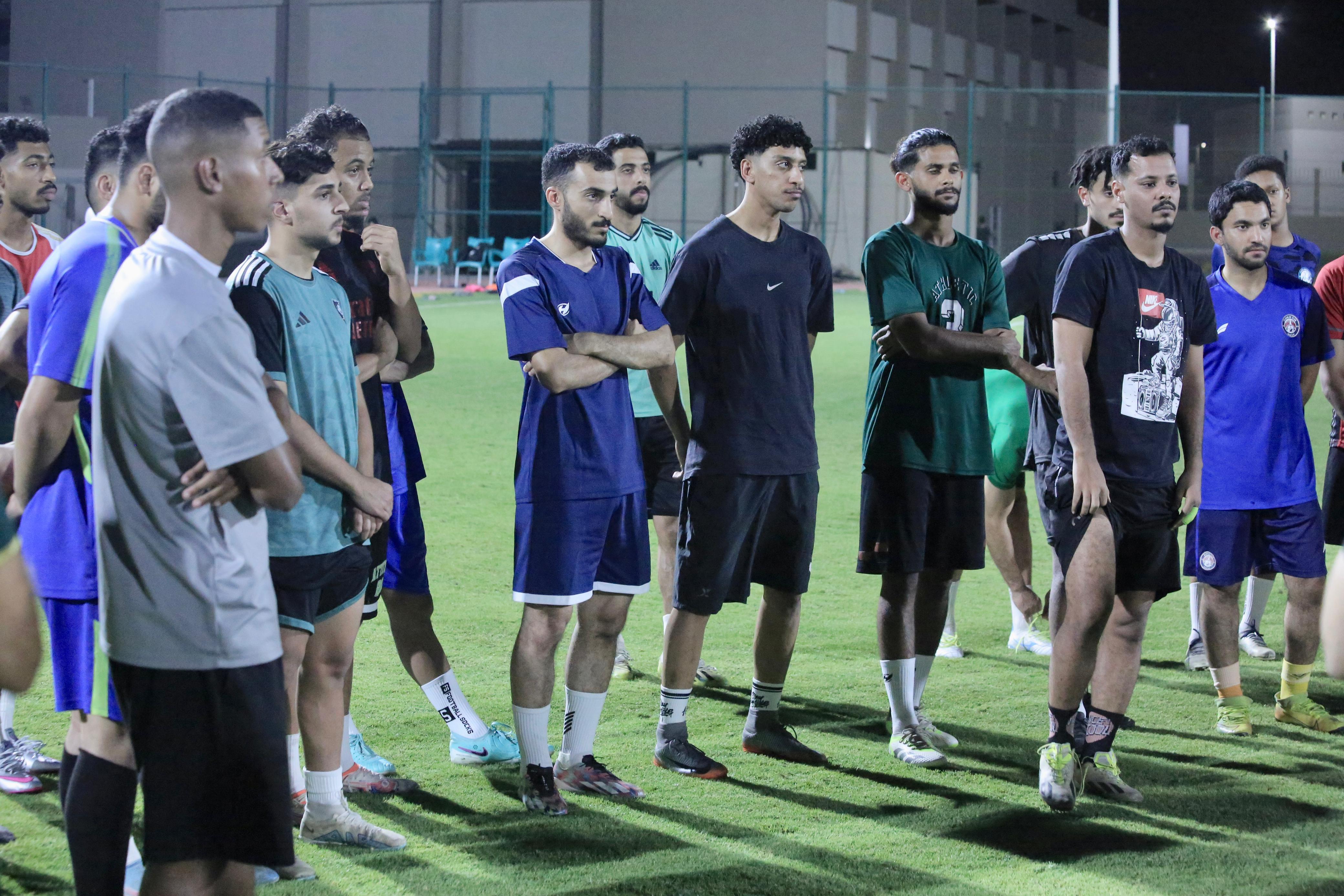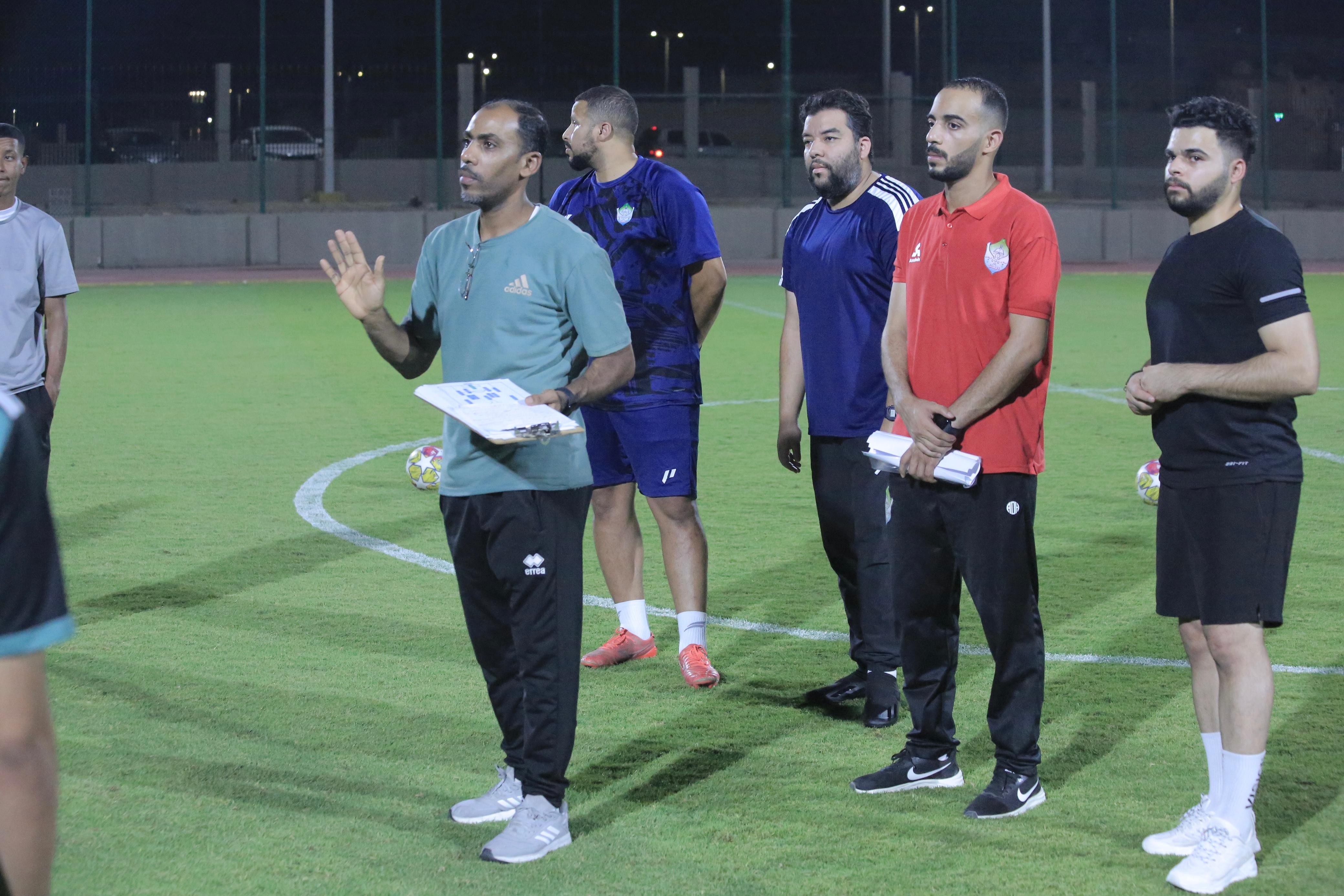 وعمل العشوان على تقسيم اللاعبين الى ثلاث مجموعات حسب مراكزهم بمناورة كروية قادها الحكم صادق العواد كما أشرف على المناورة المدرب فهد العشوان مع مساعده الكابتن علي البراهيم و متابعة دقيقة من محلل الأداء الكابتن صالح العبد القادر و مدرب الحراس الكابتن علي العواد وذلك بحضور ومتابعة من مدير الفريق الاستاذ طاهر الزقعان و إداري الفريق الاستاذ صادق العبد الرضا.
