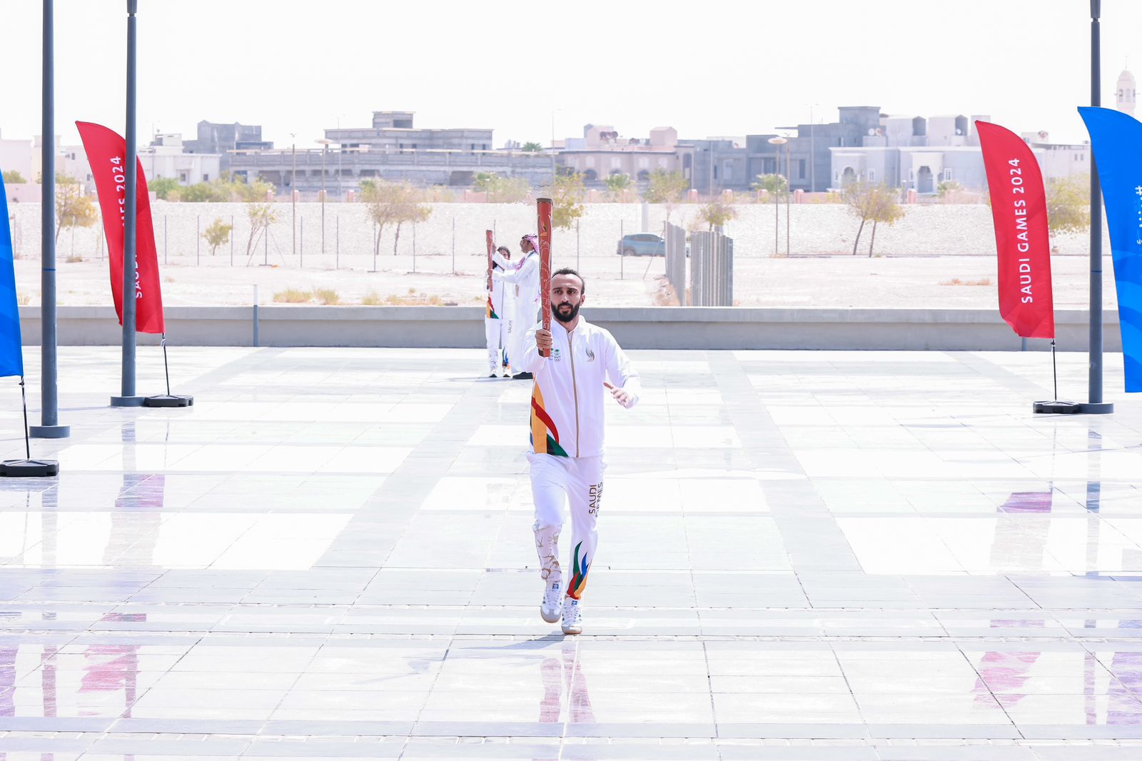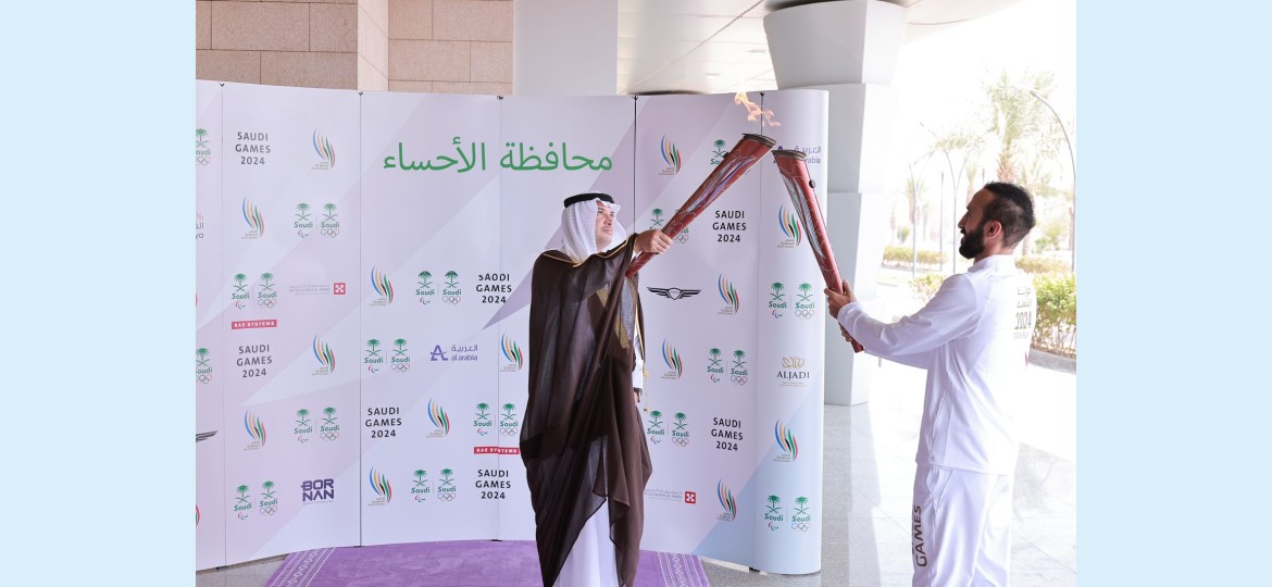 حيث بدأت جولة الشعلة في محافظة الأحساء بزيارة قصر خزام وحمل الشعلة بطلة الفروسية فنون الحميدان الحاصلة على فضية دورة الألعاب السعودية 2022، وذهبية بطولات دولية فئة ٣ نجوم ونجمتين في السعودية 2023، وذهبية في شوطين للسيدات ١ و٢، في نهائي دوري جاهز 2024، ومن ثم حمل الشعلة لاعب المنتخب للبادل فهد السعد مصنف دولي وفاز بالمركز الأول في النسخة الاولى من دورة الألعاب السعودية ولاعب المنتخب الوطني للبادل.