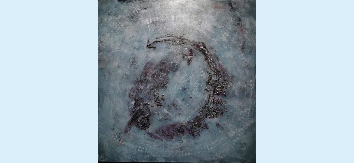 يتفانا الانسان باحلام هي مجرد بوابة امل للواقع المستمر المتعايش والملموس فالحالة البشرية محصورة بين الماضي والحاضر تتخللها ذكريات حفرة حروفها واستحكمت على مجرى الحياة فيقع الكائن الحي البشري نفسيا بين معادلة ا لتعايش وبين سيطرة التعايش ففنانتنا الرائعة تقع بين معادلة التعايش اي انها تعيش لحظة الحاضر مع البقاء في حضن الماضي فتعتبر هذه معادلة التعايش فاخذت من اللون البني ودرجاته لبيان تمسكها اللارادي للماضي وهو سيطرة التعايش للونية الارض شغفا وانتماء ونفورا بعض احيان لمزعج الوقت وترادف المسارات مكونة حالة رمزية لعاطفة نفدت مستبقية على اثارها متداركة افكارها بتفاصيل توحي الى نشوة المنتصر بطعم الالم على امل الانغراج الذي يكون شديد الحرص وعدم الاندفاع بروح التشبث بممسكة الحياة هي غير مستنفرة بل متعايشه بحضور اللون البنفسجي اعطاها امل عير بعيد ولا مركون فحق لها تعبيرا بموجودات رائعة . واستخدمت الشكل الحلزوني لتؤكد عدم فرضية الانعكاس السلبي فهي تقاوم بكل اريحية وتنظر الى صغر محدثات الماضي بوضع سهم الى اليسار لمشاهدات سيناريو ماخاب تواجده واندثر حسا وبقي ذكرى فاصدرت مكنوناتها بتميز عجيب للونية المنجز الذي تطرحة برمزية فنانتنا الرائعة