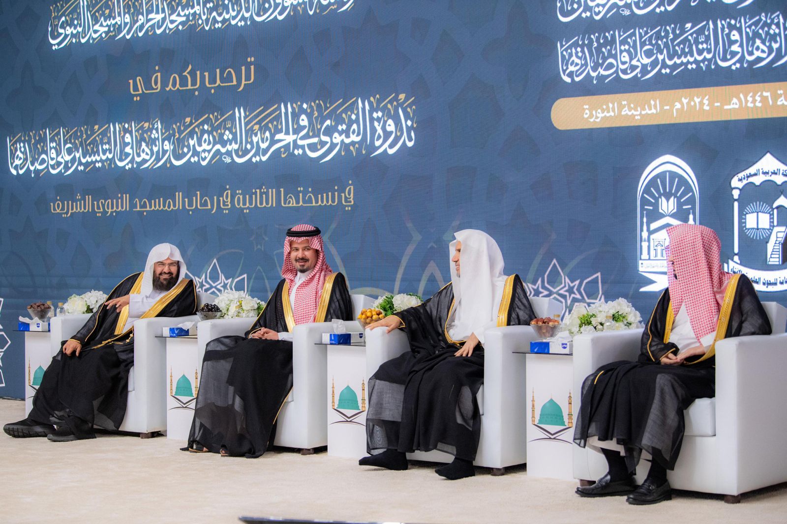 وعلى صعيد متصل، رعى سمو أمير منطقة المدينة المنورة، مراسم توقيع 3 اتفاقيات ثنائية بين رئاسة الشؤون الدينية بالمسجد الحرام والمسجد النبوي مع الجامعة الإسلامية بالمدينة المنورة والرئاسة العامة للبحوث العلمية والإفتاء، وجامعة المعرفة، بهدف إنشاء كرسي الإفتاء في المسجد النبوي الشريف وإنشاء كرسي للبحوث ودراسات الإفتاء في المسجد النبوي، بالإضافة إلى تطوير وسائل التقنية في الفتوى وتفعيل الذكاء الاصطناعي في هذا الجانب.
