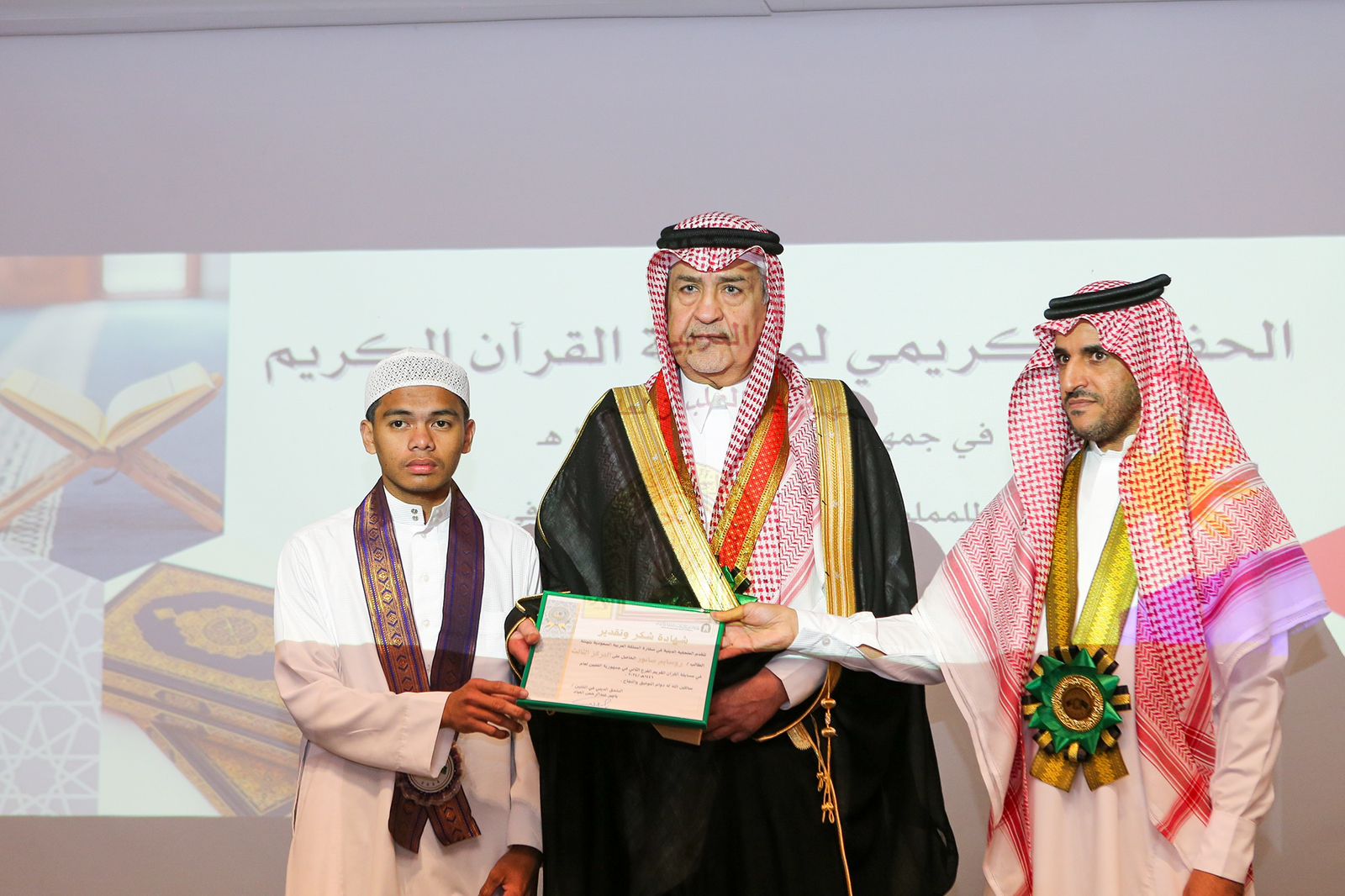 وقد أقيم الحفل بالعاصمة الفلبينية مانيلا بحضور سفير خادم الحرمين الشريفين لدى الفلبين الأستاذ هشام بن سلطان القحطاني، ومدير المفوضية لشؤون المسلمين بالفلبين السيد سيسار مارندا، ورئيس جمعية الحفاظ مسعود محمد لانتونج، والملحق الديني المكلف بسفارة المملكة في الفلبين ياسر العباد، وعدد من مدراء الجامعات والشخصيات الاجتماعية.