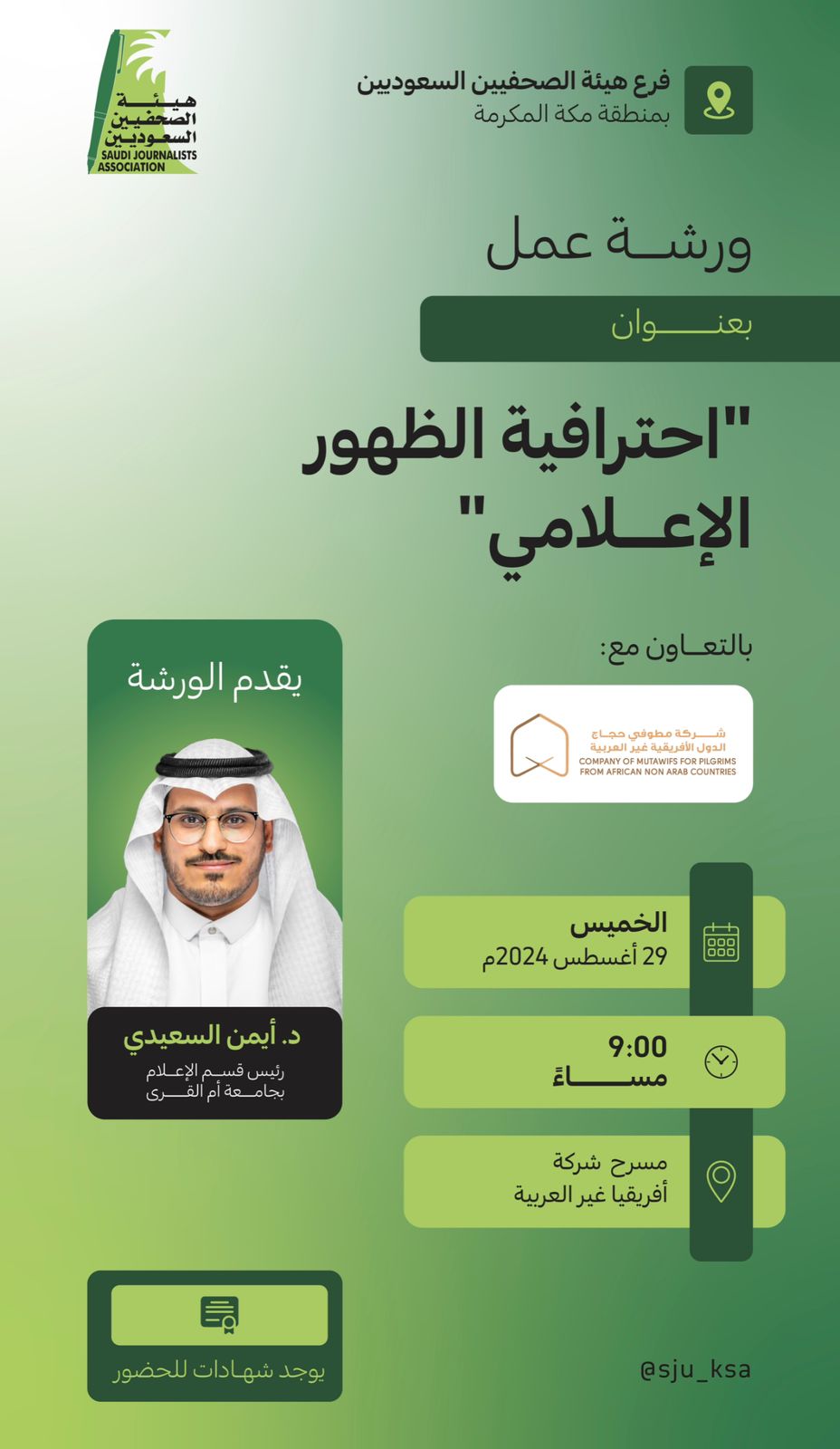 ينظم فرع هيئة الصحفيين السعوديين بمنطقة مكة المكرمة في تمام الساعة التاسعة من مساء يوم غد الخميس