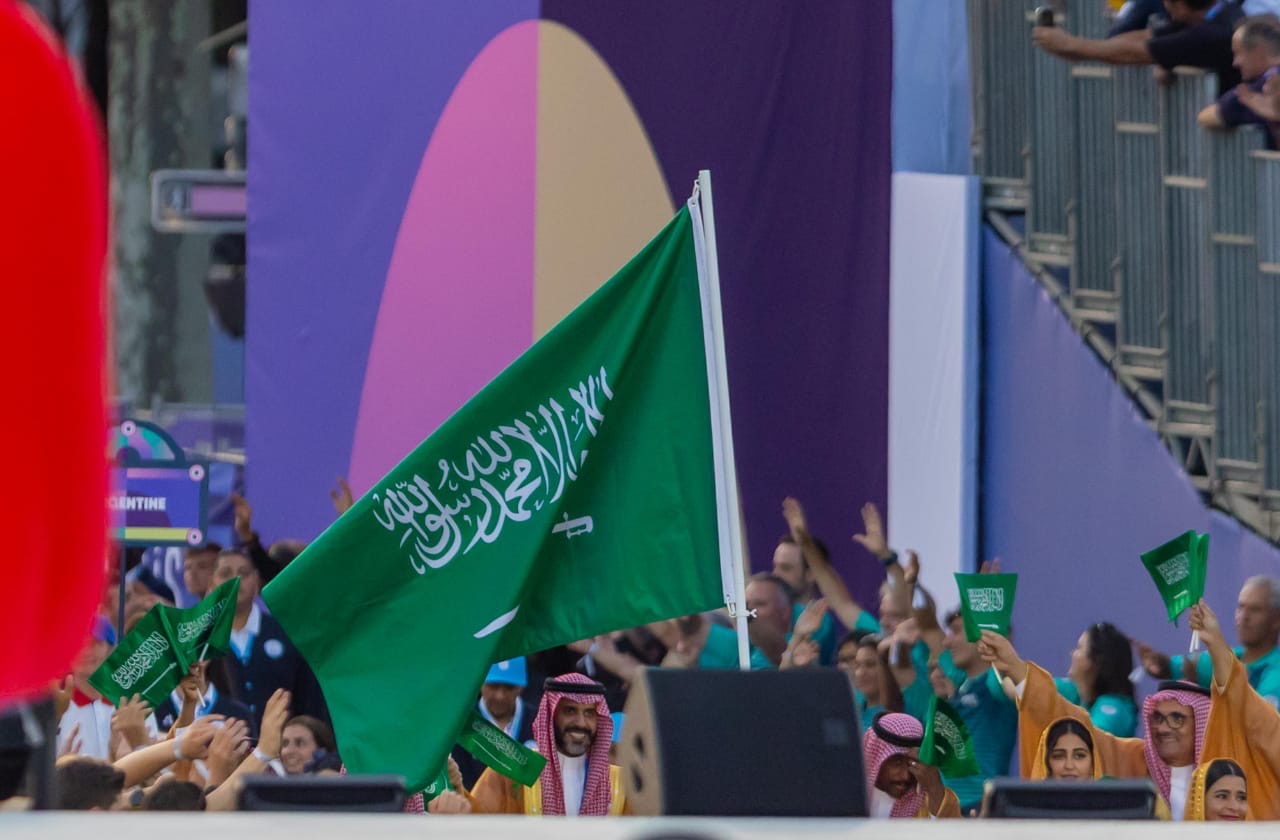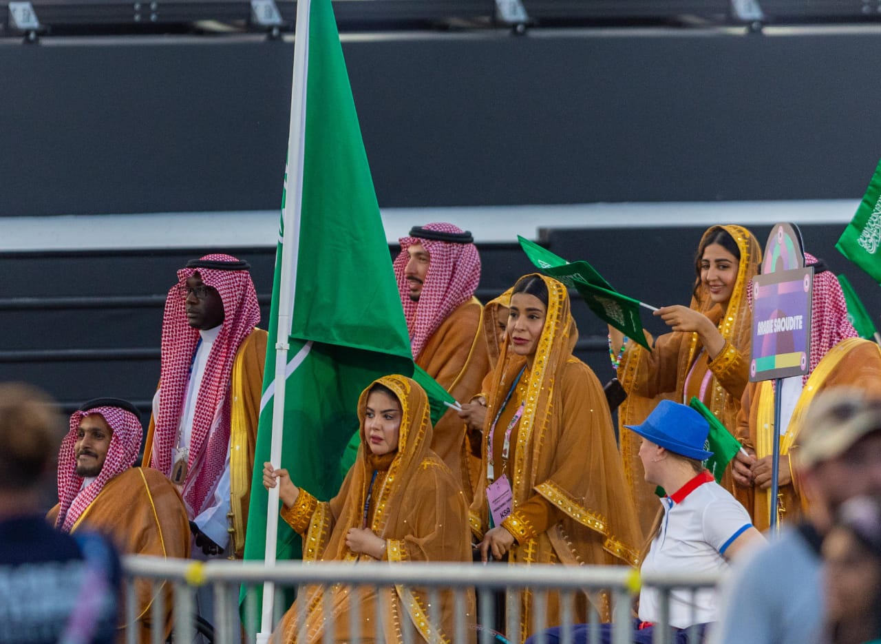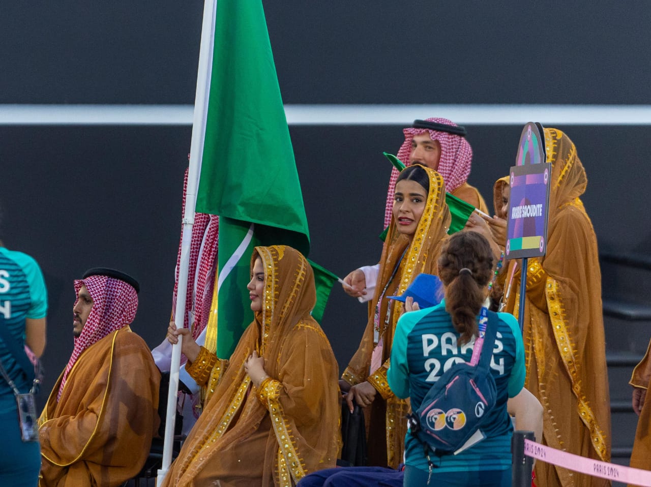 وحمل عبدالرحمن القرشي لاعب المنتخب السعودي لألعاب القوى البارالمبية، وغالية العنزي لاعبة المنتخب السعودي لكرة الطاولة البارالمبية، العلم السعودي، خلال استعراض الوفود الرياضية المشاركة في المحفل البارالمبي، والتي بلغت أكثر من 4400 رياضي من 184 بلد.
