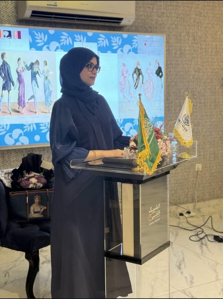 فأخذتنا المحاضرة لتلك الحقبة من طبقات المجتمع المخملية والبروتوكلات المعمول بها وكيف يتماشى الحضور مع الإتيكت والسلوك المنضبط مع تلك الطبقات لتأخذنا ايضاً لحياة الملكة ماري إنطوانيت حقبة الحكم الملكي الفرنسي وكيف كانت تعيش في البذخ بالمقابل هناك طبقة مسحوقة لا يتوفر لها أدنى درجات المعيشة والتي إنتهت بثورة الخبز وانتهاء تلك الحقبة لذلك المجتمع والجميل في ذلك بأن إبنة المحاضرة وهي طفلة لم تبلغ الثامنة من عمرها إسمها اماليا قدمتها والدتها لتلقي ملمح عن حياة ماري إنطوانيت فأبدعت الطفلة في سرد القصة وصفق لها الحضور بحرارة فعرجت بنا الأستاذة ريهام عن رموز الأدب الإنجليزي في تلك الحقبة فأتت على ذكر الروائية العظيمة جين اوستن ودفاعها عن قضايا المرأة لأنها كانت عليها قيود إجتماعية وحاربت العنوسة كذلك تطرقت لشخصية دارسي الذي كان احد شخوص الرواية لجين اوستن وعن ذلك الشاب الوسيم الثري المتعجرف وألمحت إلى أن الرقص في مجتمع الطبقة البرجوازية هو إيذان لعلاقة حب تربط بين الشاب والشابة تتوج بالزواج بينهما أبدعت الأستاذة ريهام في هذا الأدب والإختيار الموفق منها لعنوانه والذي لايقل جمالاً عن الآداب الأخرى وكان الحضور تواق أن يتداخل بالأسئلة مع الضيفة ولكن لضيق الوقت أكتفو المنظمين بوقت الأمسية المحدد ومن المشاهدات الملفته للأمسية بأن القاعة إمتلئت عن بكرة أبيها ولم يكن هناك مقعد شاغر حتى للذين اتو متأخراً قامت إدارة المقهى بإضافة مقاعد وكان حضور السيدات ملفت للنظر أكثر من الرجال وفي هذا السياق أشاد البرفسور عبدالمجيد الطيب براعية الأمسية وقال "هذه أكاديمية بإمتياز" كما أشاد الحضور بأسلوب الأستاذة ريهام وثقافتها العالية وإلمامها بالأدب العالمي ناهيك عن الأدب الإنجليزي المتخصصة فيه وكذلك لغتها الإنجليزية المتمكنة منها والتي تتحدثها بطلاقة كان التنظيم بالمقهى أكثر من رائع وكانت الأستاذة نوره الحاج المشرفة على نشاط المقهى اكثر من رائعة نظير جهودها الملموسة في التنسيق والتنظيم وكانت ترحب بالحضور فرد فرد وكما لايفوتني بذكر مذيعة الأمسية التي اجادت في التقديم وفي نهاية الأمسية قامت السيدة المكية الأستاذه إيمان الشريف بتكريم الضيفة الأستاذه ريهام الشدوي قدمت لها درع إهداء من المقهى كما اهدتها باقة من الورود على جهودها وحضورها الجميل في هذه الأمسية