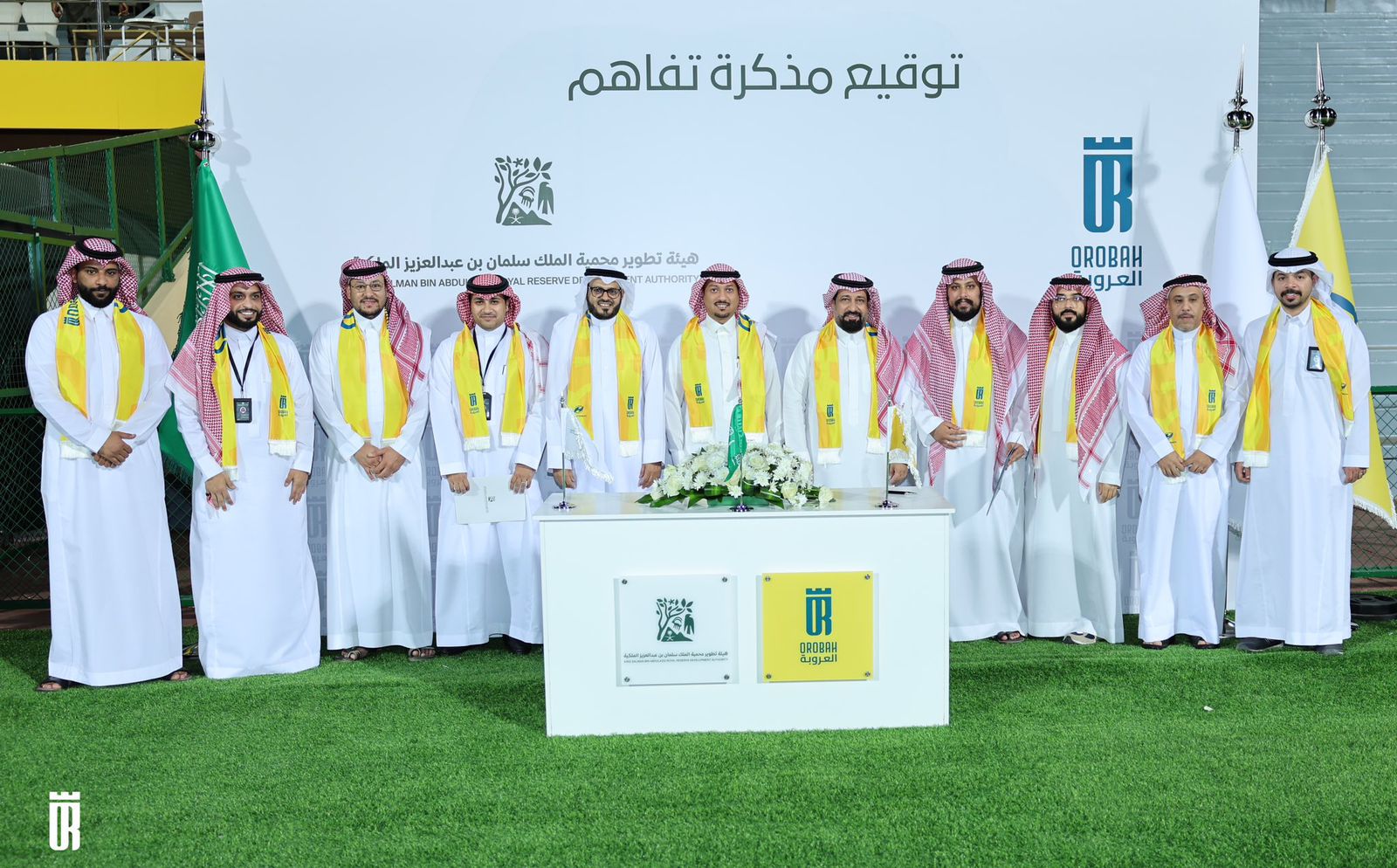 وقعت هيئة تطوير محمية الملك سلمان بن عبدالعزيز الملكية مذكرة تفاهم مع نادي العروبة في منطقة سكاكا .