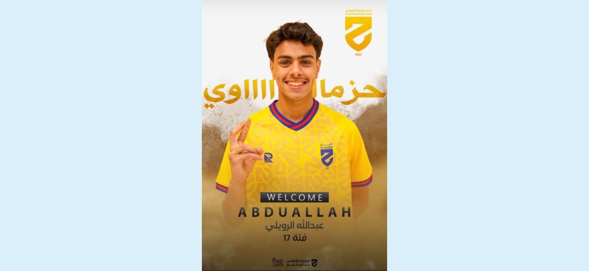 وقع اللاعب عبدالله حطاب الرويلي، عقداً احترافياً مع نادي الحزم، لمدة ثلاث سنوات قادماً من شباب العروبة.