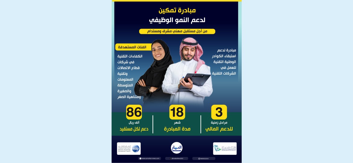 أطلقت وزارة الاتصالات وتقنية المعلومات بالتعاون مع البرنامج الوطني لتنمية تقنية المعلومات (NTDP) مبادرة "تمكين" لدعم الكوادر التقنية السعودية في الشركات المتناهية الصغر والصغيرة والمتوسطة، بهدف تعزيز نمو الاقتصاد الرقمي تماشياً مع أهداف رؤية المملكة 2030.