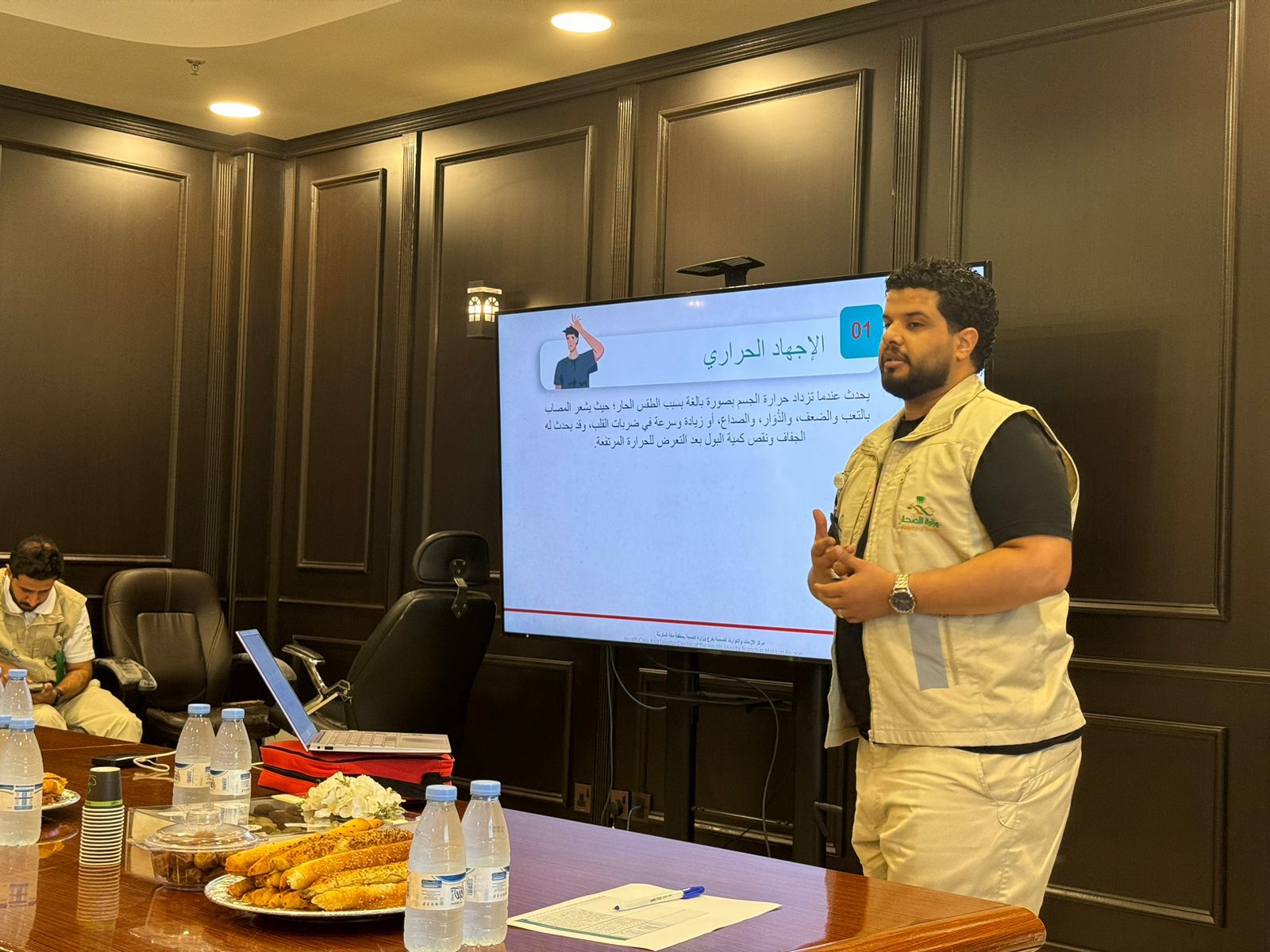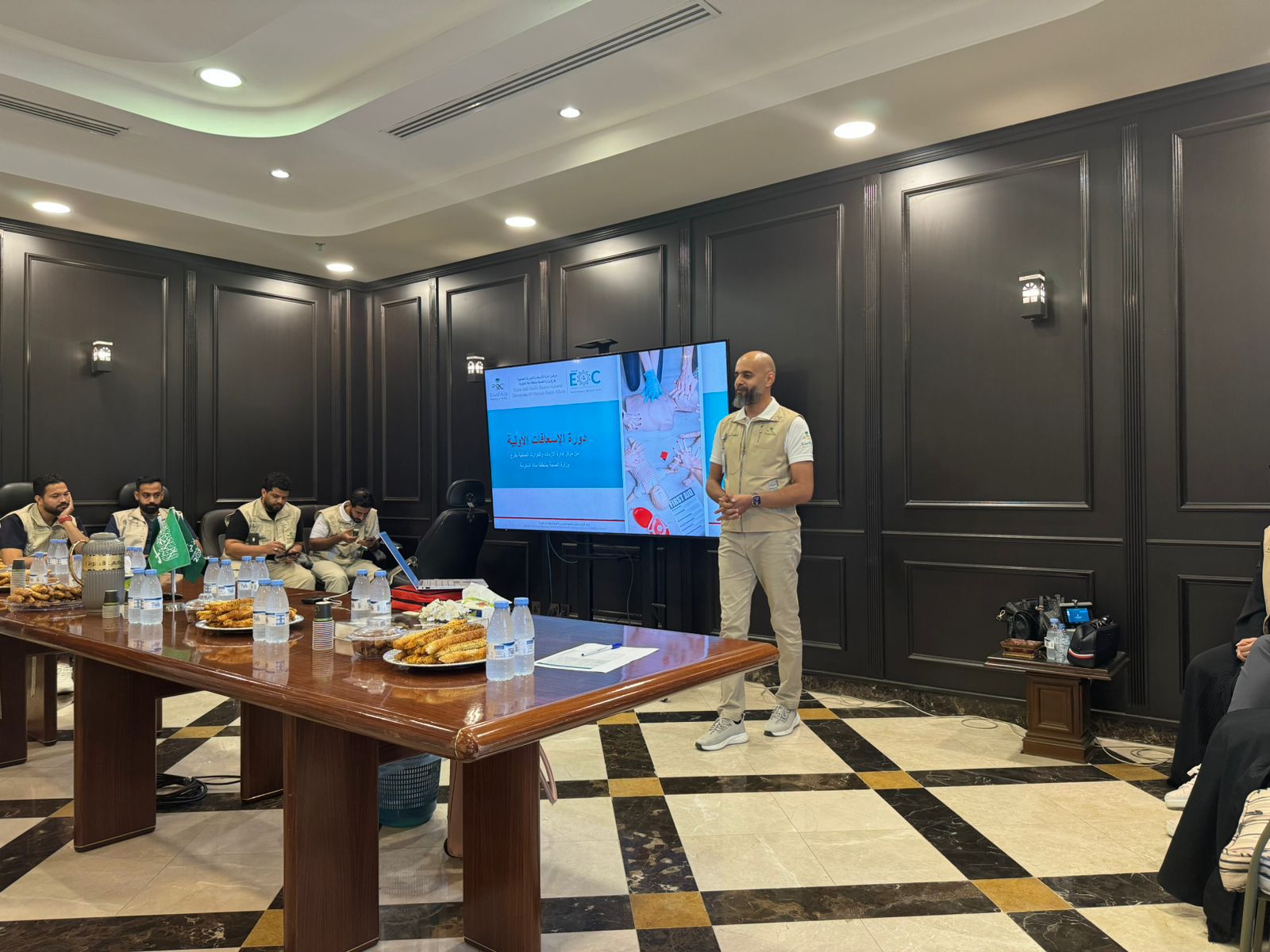 وعلى صعيد آخر اقام مركز إدارة الأزمات والكوارث الصحية بفرع منطقة مكة المكرمة، برنامجاً تدريبياً للإسعافات الأولية، لموظفي فرع وزارة النقل بمنطقة مكة المكرمة، حيث تضمن البرنامج ورشة عمل ودورة تدربية للحالات الأكثر شيوعاً، الإصابات وطرق علاجها، ورشة الإنعاش القلب الرئوي والإختناق، والتعامل مع الحالات التي تستدعي التدخل الطبي.