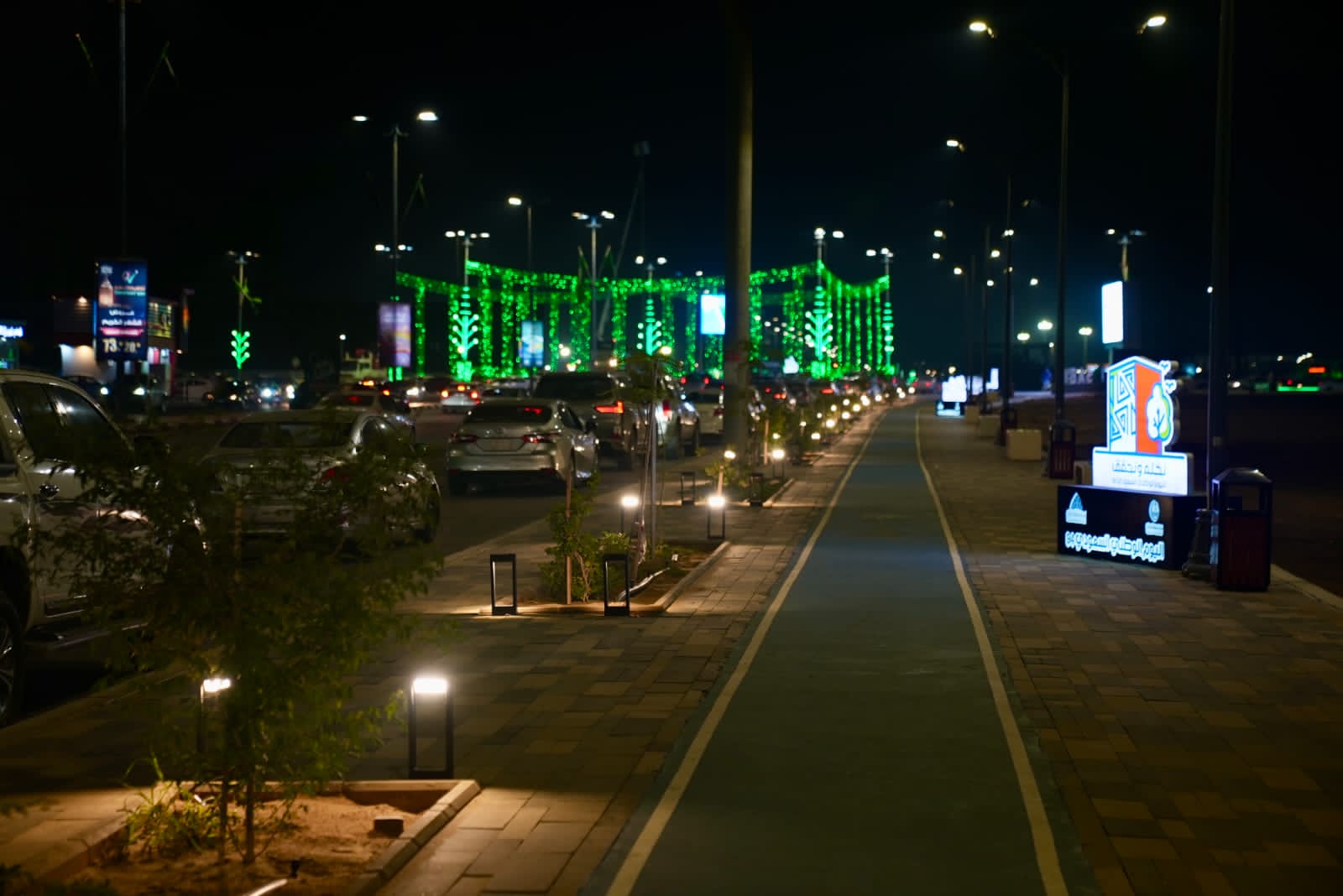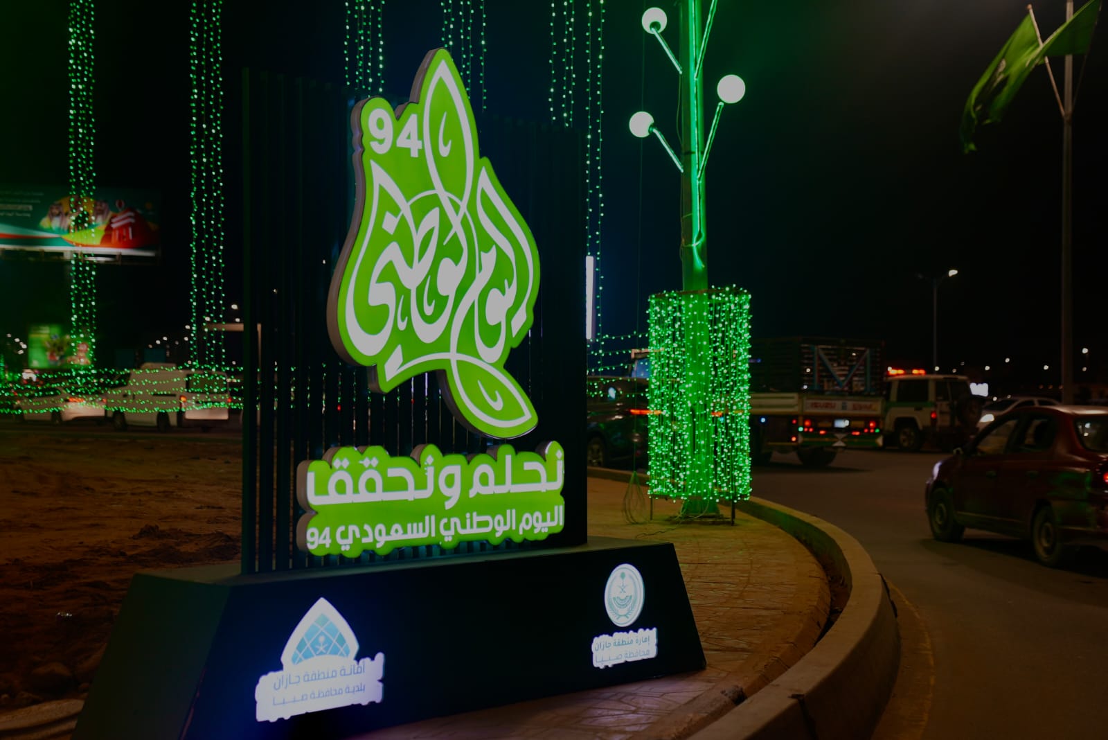إضافة إلى ذلك، ستضاء الميادين الرئيسية باللون الأخضر، إلى جانب الطرق الرئيسية والفرعية، بالإضافة إلى عروض على شاشات الطرق الرئيسية التي تعرض شعارات اليوم الوطني ورسائل تهنئة، مما يضفي جوًا احتفاليًا على المدينة ويجذب الزوار والمواطنين للاحتفال بروح اليوم الوطني.