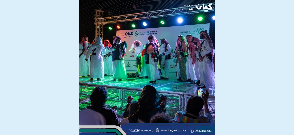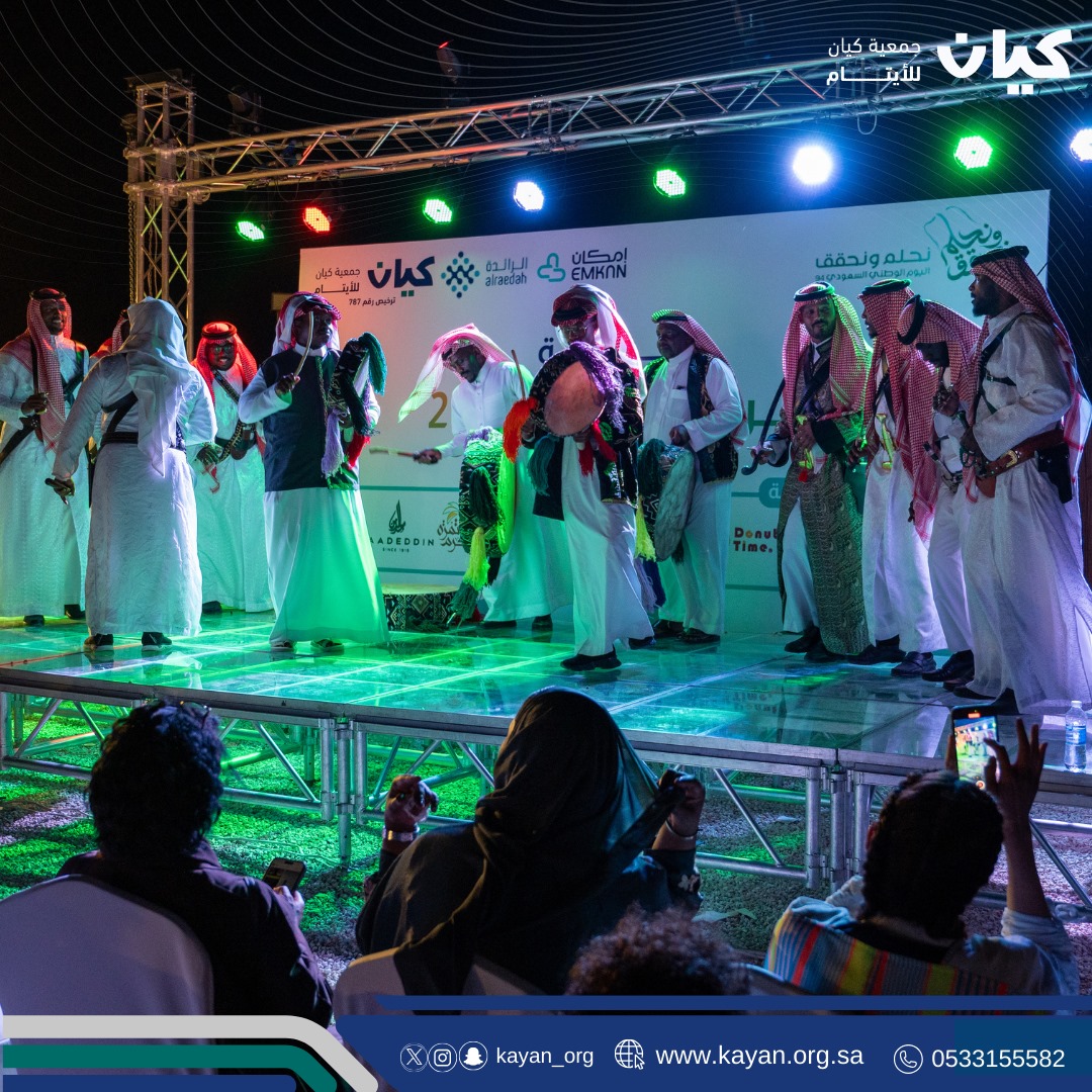 في أجواء وطنية مليئة بمشاعر الحب والفخر والشموخ والاعتزاز بالوطن الغالي المملكة العربية السعودية، أقامت جمعية "كيان" للأيتام ذوي الظروف الخاصة احتفالا كبيرا بمناسبة اليوم الوطني الـ 94 تحت شعار " نحلم ونحقق.. فرحة وطن 2" بحضور عدد من أعضاء مجلس الإدارة وأعضاء الجمعية العمومية والأعضاء ومنسوبات الجمعية ومستفيدي كيان والأسر البديلة. وكذلك بحضور الرعاة والداعمين، وفريق قوة عطاء التطوعي وفريق كن سالما التطوعي وملتقى فجر الإعلام التطوعي، ووسائل الإعلام المتنوعة حيث أقيم الحفل في مزرعة الشيخ فهد الثنيان بالعمارية.