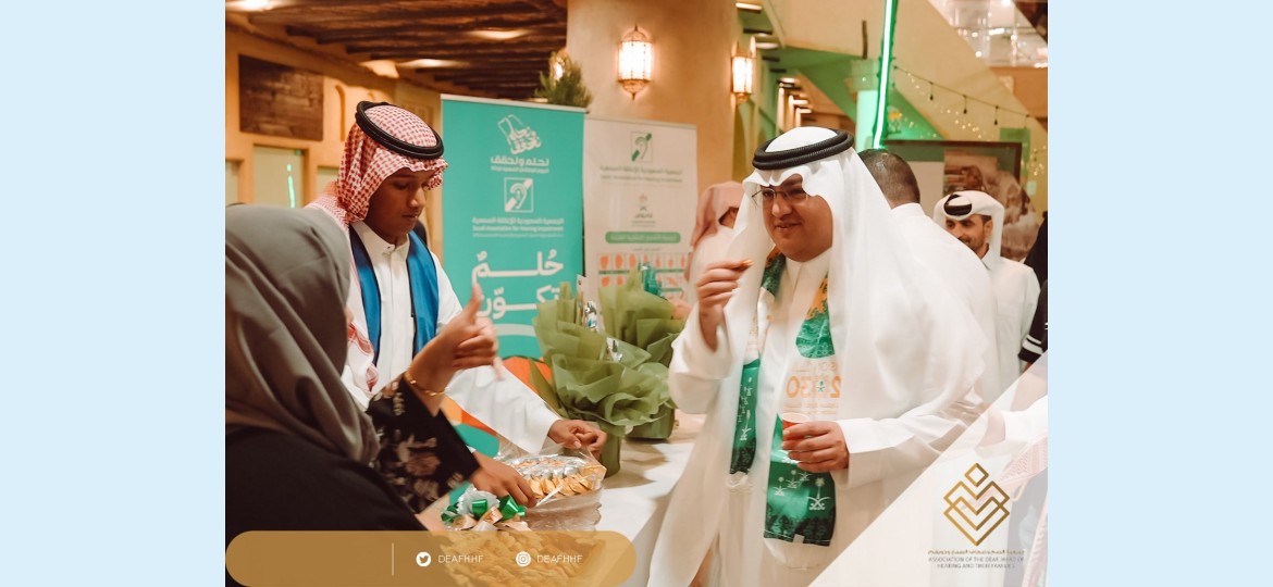 وأشار الباحص نحن اليوم وفي غمرة هذه الذكرى العزيزة على قلوبنا نواصل بحمد الله مسيرة البناء والنماء في عهد خادم الحرمين الشريفين الملك سلمان بن عبدالعزيز وسمو ولي عهده الأمين رئيس مجلس الوزراء صاحب السمو الملكي الأمير محمد بن سلمان بن عبدالعزيز حيث النجاحات المتوالية والمشاريع التنموية تزدهر في بلادنا وتتوسع مراحل التنمية والبنى التحتية معلنة عهد زاهر ورخاء يعم البلاد فها هو الصعيد الاجتماعي والتنموي والقطاع الغير ربحي من خلال دعم الجمعيات المتخصصة حيث أولت القيادة الحكيمة الاهتمام بهذا القطاع ومن ذلك الاهتمام والدعم للأشخاص ذوي الإعاقة من فئة الصم وضعاف السمع فمنحته الفرصة لأداء مهمته الشريفة فغدت تلك الجمعيات الخاصة بالصم رافدا حقيقيا محققة الانجازات.