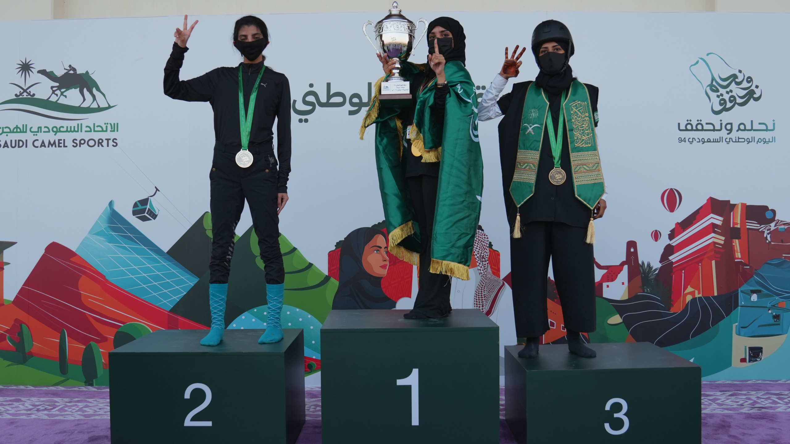 وفي الشوط الخامس المخصص للسيدات، نجحت الهجانة عبير أحمد حكمي مع مطيتها “الغزال” في حسم لقب الشوط الخامس وحلت الهجانة ريما محمد الحربي، مع مطيتها “الصداوي” ثانياً”، والهجانة خلود عبدالله الشمري، مع مطيتها “بشار” ثالثاً.