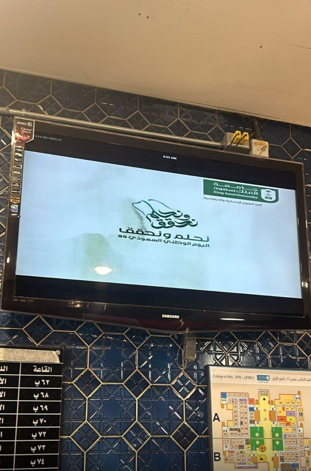 وتبادل الجميع التهاني والتبريكات بهذه المناسبة كما تزين مبنى الكلية بالأعلام الخضراء وصور القيادة واستعراض شعارات اليوم الوطني على شاشات الكلية.