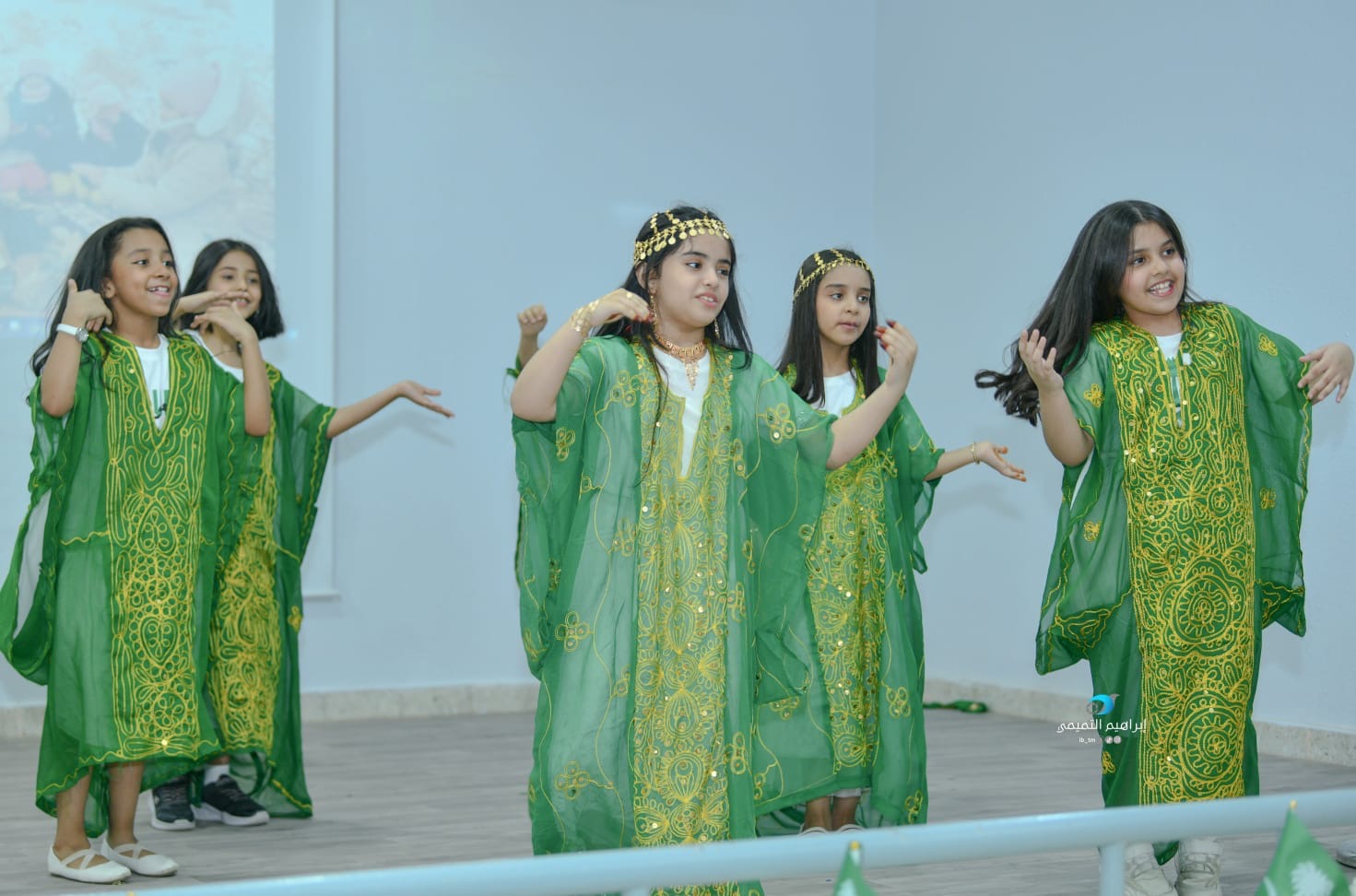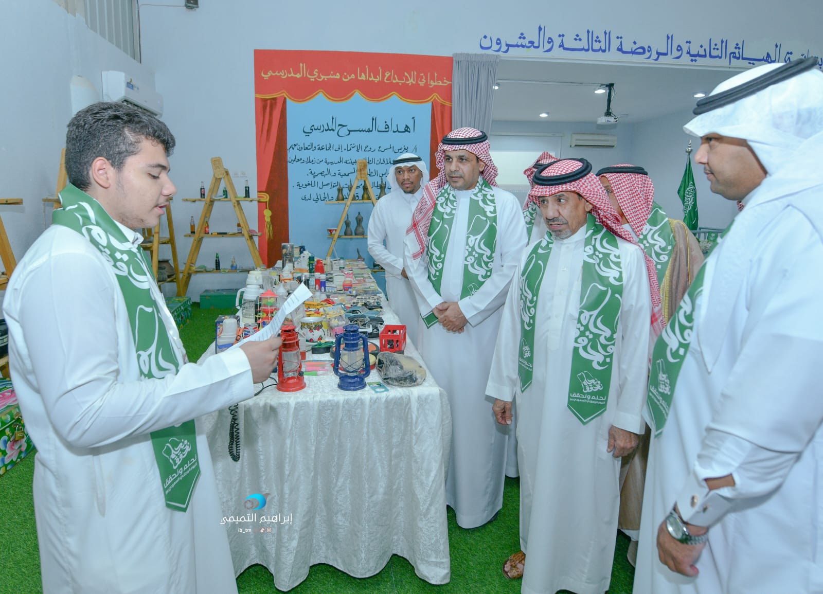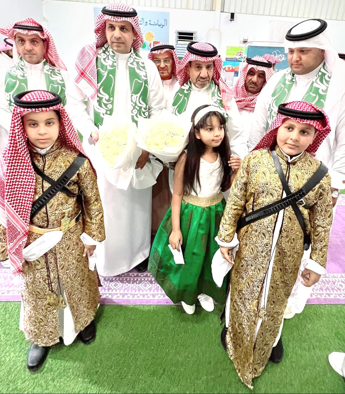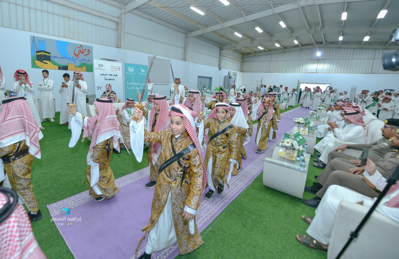 بدأ الحفل باستقبال الكشافة وطلاب الابتدائية الثانية للحضور بقصائد ترحيبية، تلا ذلك جولة على الأركان المتنوعة للاحتفاء باليوم الوطني.
