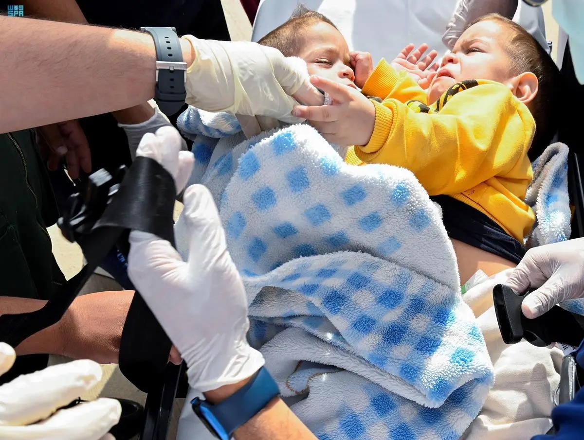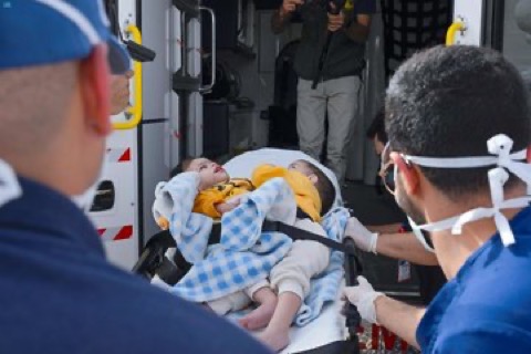 إنفاذًا لتوجيهات خادم الحرمين الشريفين الملك سلمان بن عبدالعزيز آل سعود وصاحب السمو الملكي الأمير محمد بن سلمان بن عبدالعزيز آل سعود ولي العهد رئيس مجلس الوزراء - حفظهما الله - وصل اليوم إلى مطار الملك خالد الدولي بالرياض التوأم السيامي السوري "إحسان وبسام" برفقة والديهما، قادمين من مدينة أنقرة بجمهورية تركيا عبر طائرة الإخلاء الطبي الجوي، حيث نُقلَ التوأم فور وصولهما إلى مستشفى الملك عبدالله التخصصي للأطفال بوزارة الحرس الوطني؛ لدراسة حالتهما والنظر في إمكانية إجراء عملية فصلهما.