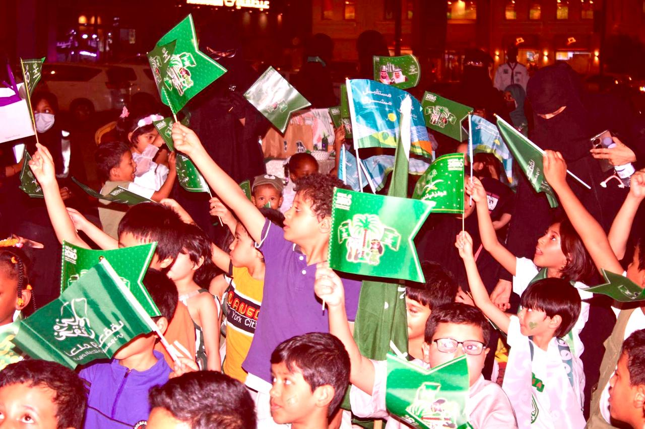 أما فريق كشافة مكة، فقد أضفى حماسًا كبيرًا من خلال الصياحات الكشفية ورفع الأعلام في مسيرة وطنية، تجسدت فيها روح الولاء للوطن الغالي.