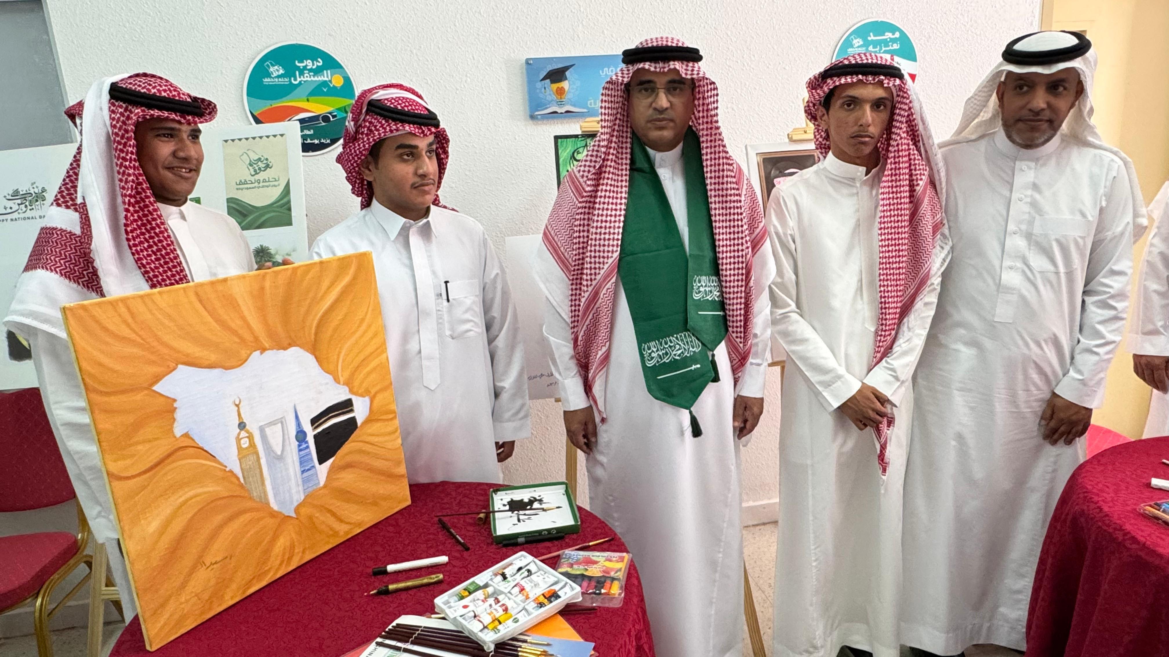 واشتمل الاحتفال على عدد من الفعاليّات بمشاركة طلابية، منها المرسم الحر، والفلكلور الشعبي، وندوة رؤية وطن، وتعزيز الولاء والانتماء إذ عبّروا من خلالها حبهم وولائهم للوطن ببصمات من القلب، مؤكدين فيها أن حب الوطن ينبض في قلوب الجميع، كما تنبض الحياة في الأرواح، وجددوا فيها الولاء والانتماء للوطن وقادته -حفظهم الله-.