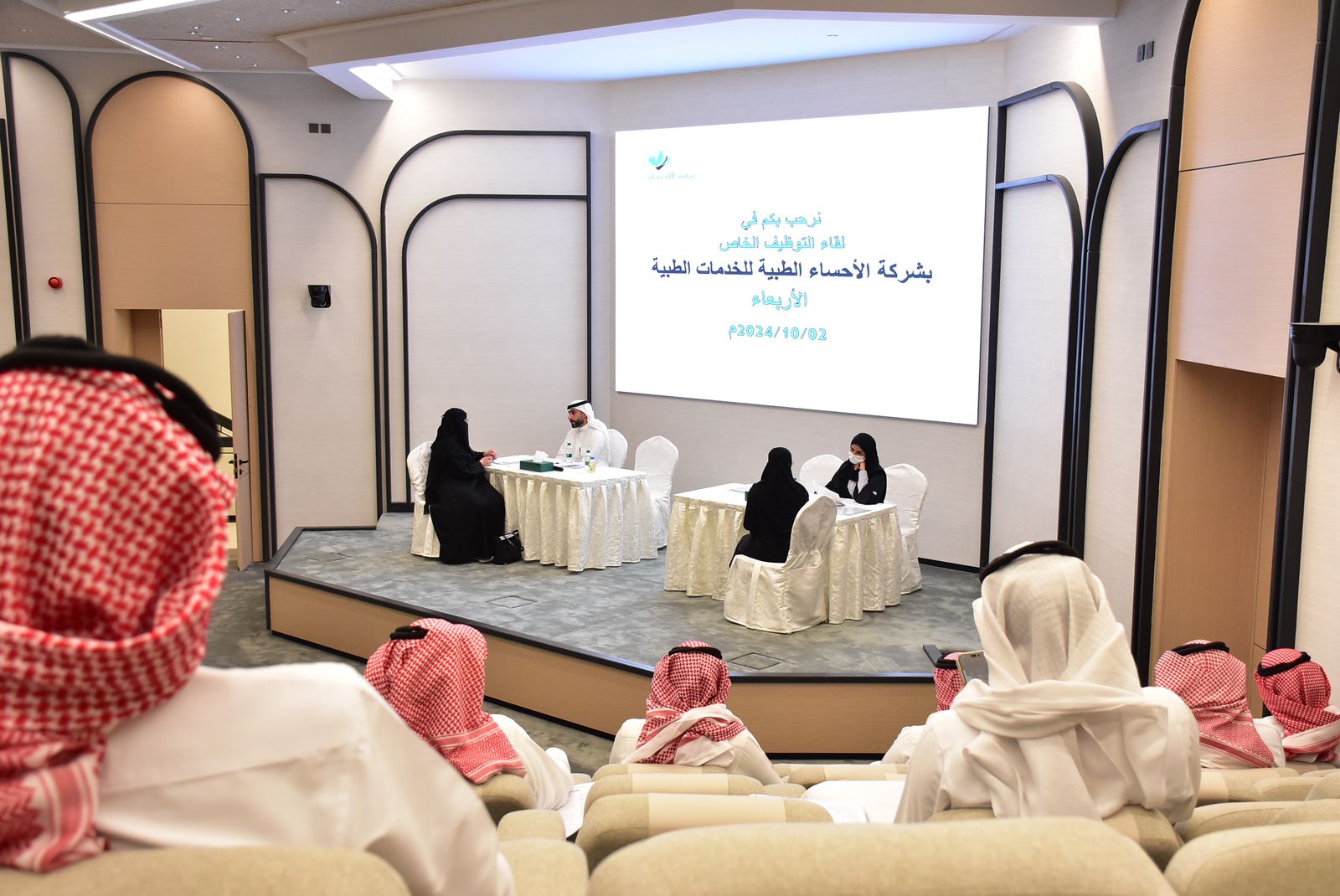 نظّمت غرفة الأحساء بالتعاون مع وزارة الموارد البشرية والتنمية الاجتماعية "مكتب الضمان الاجتماعي بالأحساء "تمكين"، والمعهد الثانوي الصناعي الأول بالأحساء صباح أمس الأربعاء 02 أكتوبر 2024، لقاء توظيف مع شركة الأحساء للخدمات الطبية وشركة السلام للخدمات الطبية، لعرض 74 وظيفة متنوّعة، وذلك بقاعة الشيخ سليمان الحماد -رحمه الله- بمقر الغرفة.