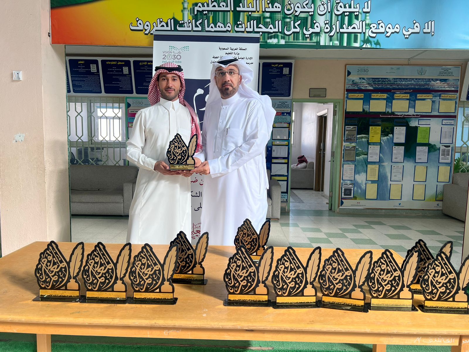 ثم تكريم المعلمين بدروع رمزية تذكارية تعبر عن محبه و تقدير لجهودهم المباركة وعلى عطائهم الذي يعلوا عاماً بعد عام، ثم تناول الجميع مائدة الإفطار المعد بهذه المناسبة، وسيتم تنفيذ بعض الأنشطة خلال الأسبوع عن اليوم العالمي للمعلم منها الرسم وغرس بعض الأشجار أمام المدرسة بمشاركة المعلمين و الطلاب.