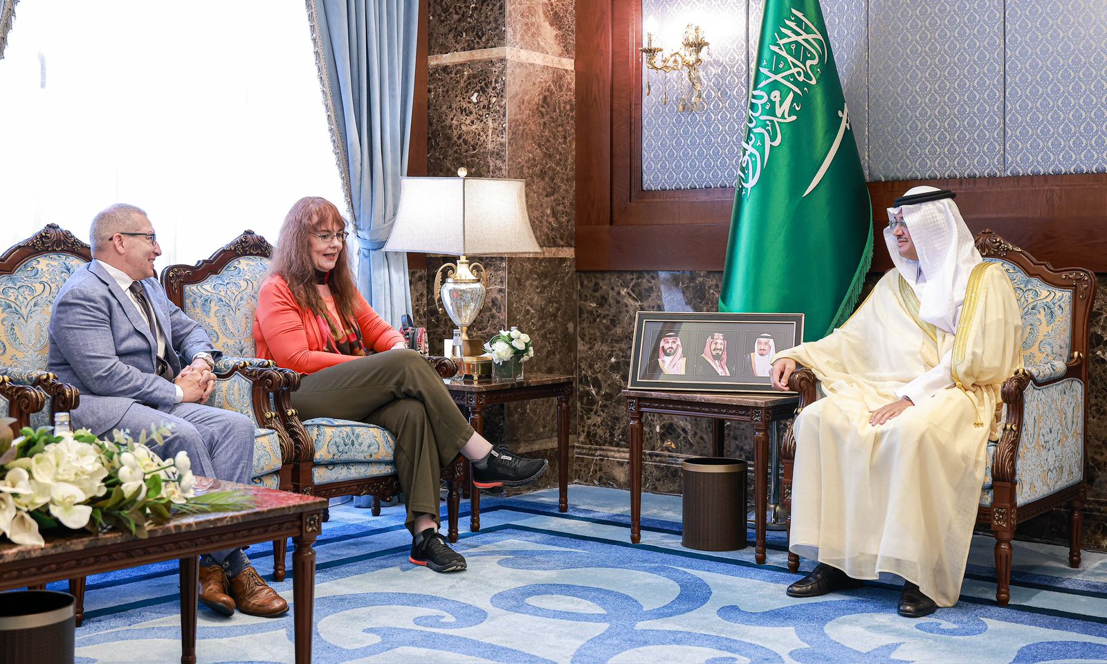 استقبل صاحب السمو الملكي الأمير سعود بن طلال بن بدر محافظ الأحساء ، بمكتب سموّه بمقر المحافظة اليوم “ الأحد “ ، نائب سفير الولايات المتحدة الأمريكية لدى المملكة أليسون ديلورث ويرافقها القنصل الأمريكي بالظهران جيمس سيندل ، وجرى خلال اللقاء تبادل الأحاديث الودية