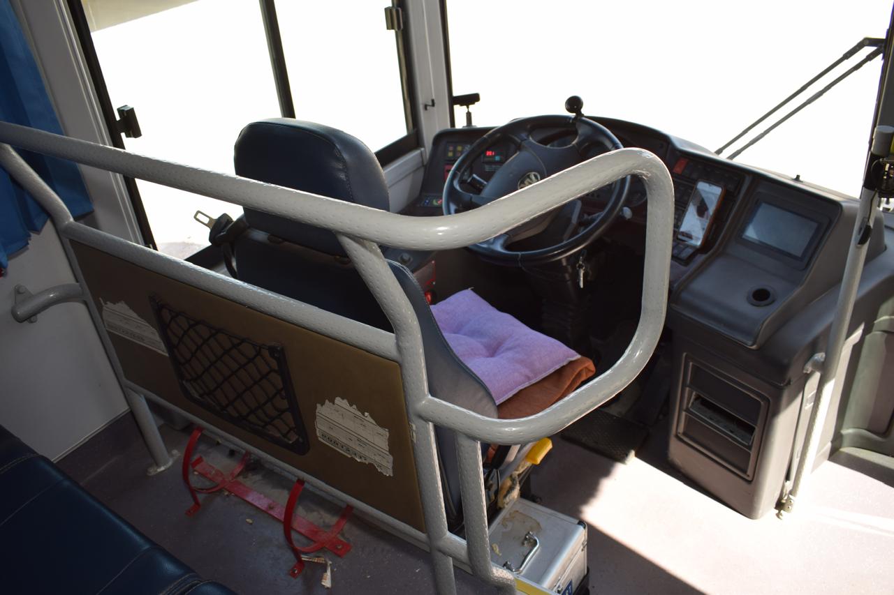 كما جرى التنبية خلال النزول من الحافلة على: انتظر واجلس بمقعدك ولا تبادر بالنزول حتى تتوقف الحافلة تماماً، تجنب التدافع وانتظم في الممر حتى تنزل من الحافلة،عند النزول من الحافلة لا تتدفع وتأكد من خلو الطريق ثم ابدء بالنزول، ابتعد 5 خطوات أثناء النزول من الحافلة ولا تعبر من حلف الحافلة، في حال سقوط أمتعتك انتظر حتى مغادرة الحافلة تم اذهب لاستعادتها