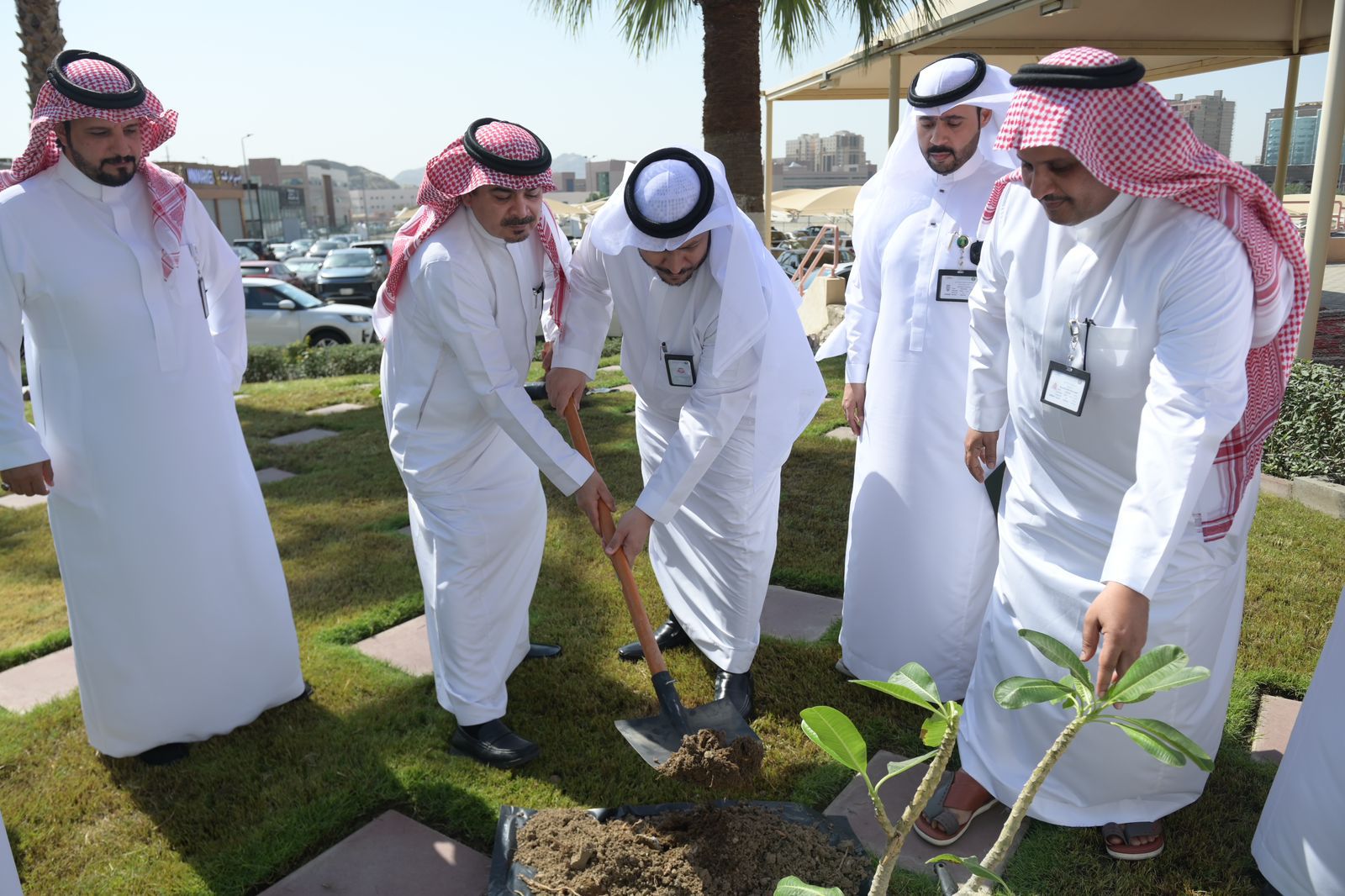 دشن تجمع مكة المكرمة الصحي مبادرة تشجير المستشفيات بحضور الرئيس التنفيذي للتجمع الصحي الدكتور حاتم بن أحمد العمري ومدير مكتب وزارة البيئة والمياه والزراعة بالعاصمة المقدسة الدكتور محمد الحتيرشي، وذلك بمدينة الملك عبدالله الطبية.