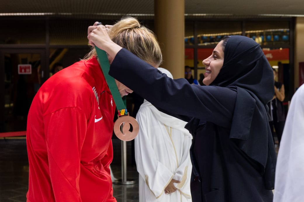 توجت أضواء العريفي، مساعد وزير الرياضة لشؤون الرياضة وعضو مجلس إدارة اللجنة الأولمبية والبارالمبية السعودية، الفائزات في منافسات السباحة (للسيدات) التي اختتمت اليوم الأحد في مسبح وزارة الرياضة بمجمع الأمير فيصل بن فهد الأولمبي، بحضور منى شهاب، عضو مجلس إدارة الاتحاد السعودي للسباحة.