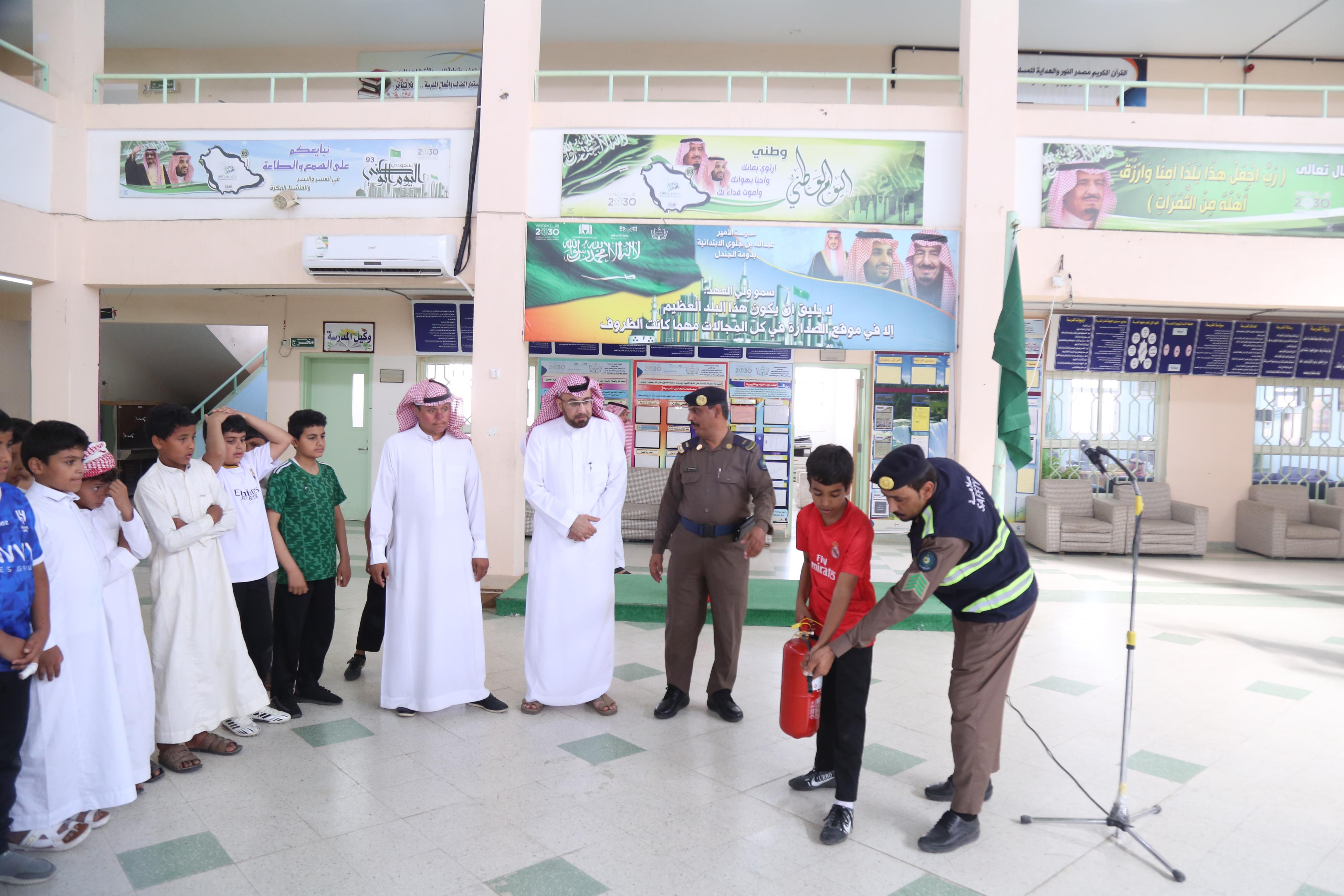 زار يوم أمس الأربعاء 6 ربيع الاخر 1446 هـ الموافق 9 اكتوبر 2024 م بعض من منسوبي إدارة الدفاع المدني بمحافظة دومة الجندل ابتدائية الأمير عبدالله بن جلوي بن تركي آل سعود لتثقيف الطلاب عن إجراء السلامة ..