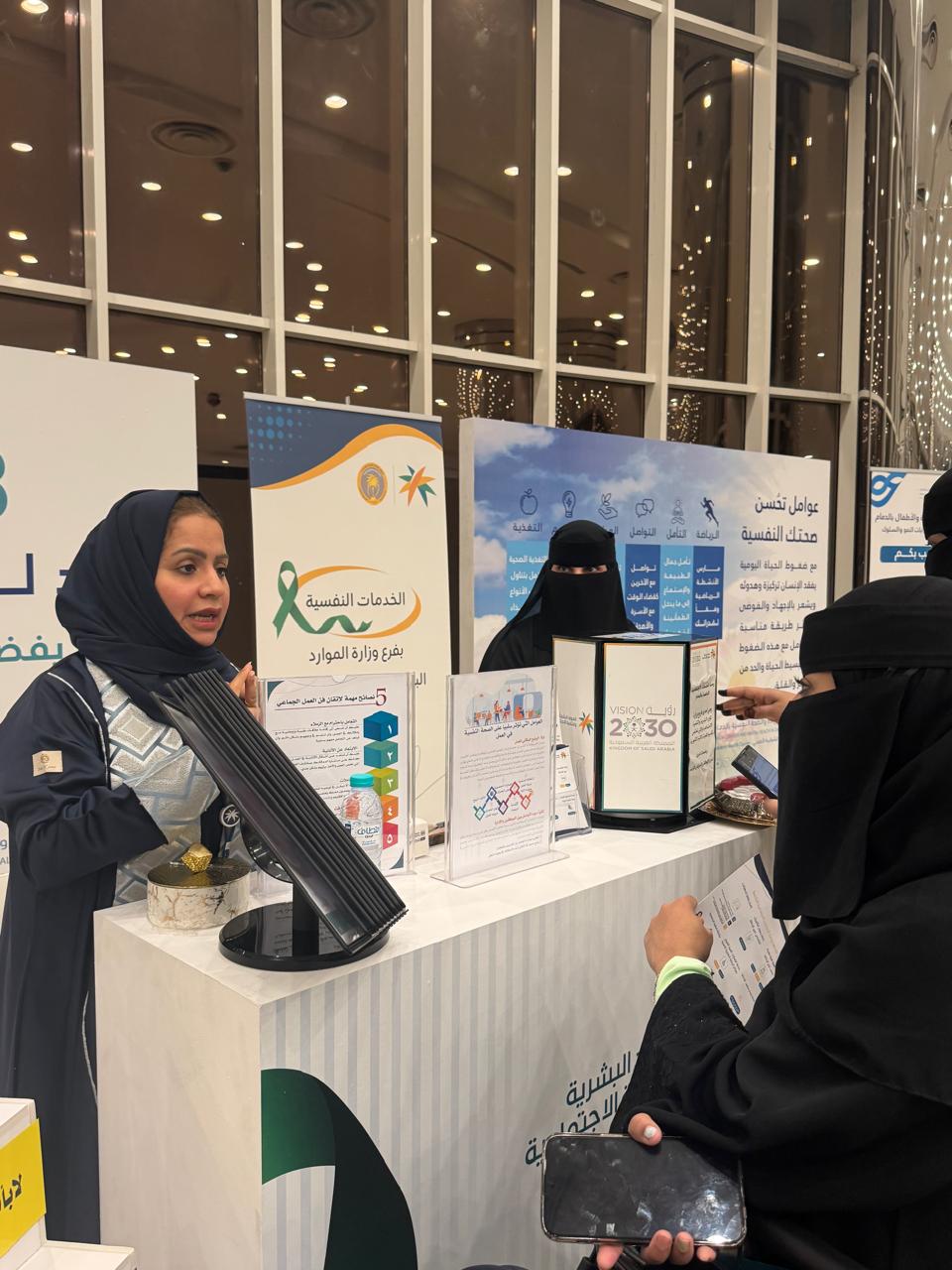 واشتملت مشاركة فرع الوزارة، على ركنًا تعريفيًا مخصصًا للتعريف بالخدمات المقدمة من الوزارة، كما تضمن الركن لوحات توعوية تحتوي على شرحًا لعناصر العمل الناجح، والأضرار المترتبة على الضغط النفسي، إضافة إلى التطرّق لأهم العوامل التي تؤثر بشكل سلبي على الصحة النفسية في بيئه العمل.