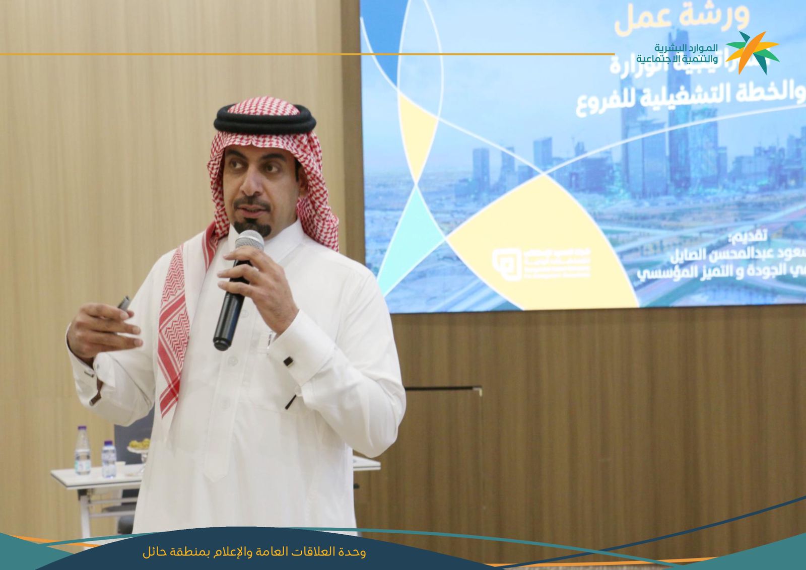 وقد قدم ورشة العمل بقاعة التدريب في مركز التنمية الاجتماعية المستشار في الجودة و التميز المؤسسي المدرب سعود الصايل .