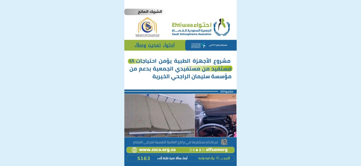 الجدير بالذكر أن المصابين بالأمراض النفسية يعانون الوصمة المجتمعية مما يعيق وصولهم للخدمات بسبب انكار المرض أو الخوف من الوصم، وقد قدمت احتواء منذ تأسيسها في ١٢ جماد الأولى ١٤٣١هـ جهوداً عظيمة في التعريف والتوعية بأهمية تعزيز الصحة النفسية وأثرها في الصحة العامة وجودة الحياة، ضمن مجموعة من التدخلات النفسية والاجتماعية الموجهة لفئة مرضى الفصام باعتبارهم المستهدف الرئيسي و الأشد تضرراً بين الأمراض النفسية والأكثر حاجة للمساندة والدعم نظير الأعراض الغامضة والمزعجة ومستوى الوعي و قلة الاهتمام ببرامج العافية النفسية التي تعمل على ربط العلاج الدوائي بالعلاج المعرفي السلوكي التأهيلي، وقد وجهت احتواء مساعيها نحو تعزيز هذه الثقافة و التنسيق بين الجهات المعنية لتحسين البيئة المحيطة بمرضى الفصام .. ومن أمثلة ذلك الشراكة والتعاون مع المؤسسات المانحة التي تحقق مستهدفات وطنية في المسؤولية المجتمعية ومن أهمها مؤسسة سليمان الراجحي الخيرية التي دعمت عدداً من مشاريع احتواء وكان آخرها مشروع الأجهزة الطبية الذي أمن احتياجات ثمانية عشر مستفيداً من مستفيدي الجمعية.