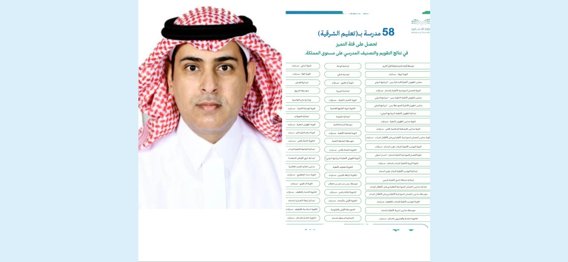 وحصدت 58 مدرسة في المنطقة الشرقية جوائز التميز على مستوى المملكة خلال الملتقى الذي تنظمه هيئة تقويم التعليم والتدريب بالتعاون مع وزارة التعليم.