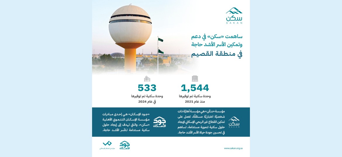 يأتي هذا التمكين في سياق إسهامات "سكن" المستمرة بهدف تحسين جودة الحياة للأسر الأشد حاجة من خلال المبادرات والبرامج والحملات التي تعكس تكاتف المجتمع وايمانه بالأثر التنموي الكبير للعمل الإنساني.