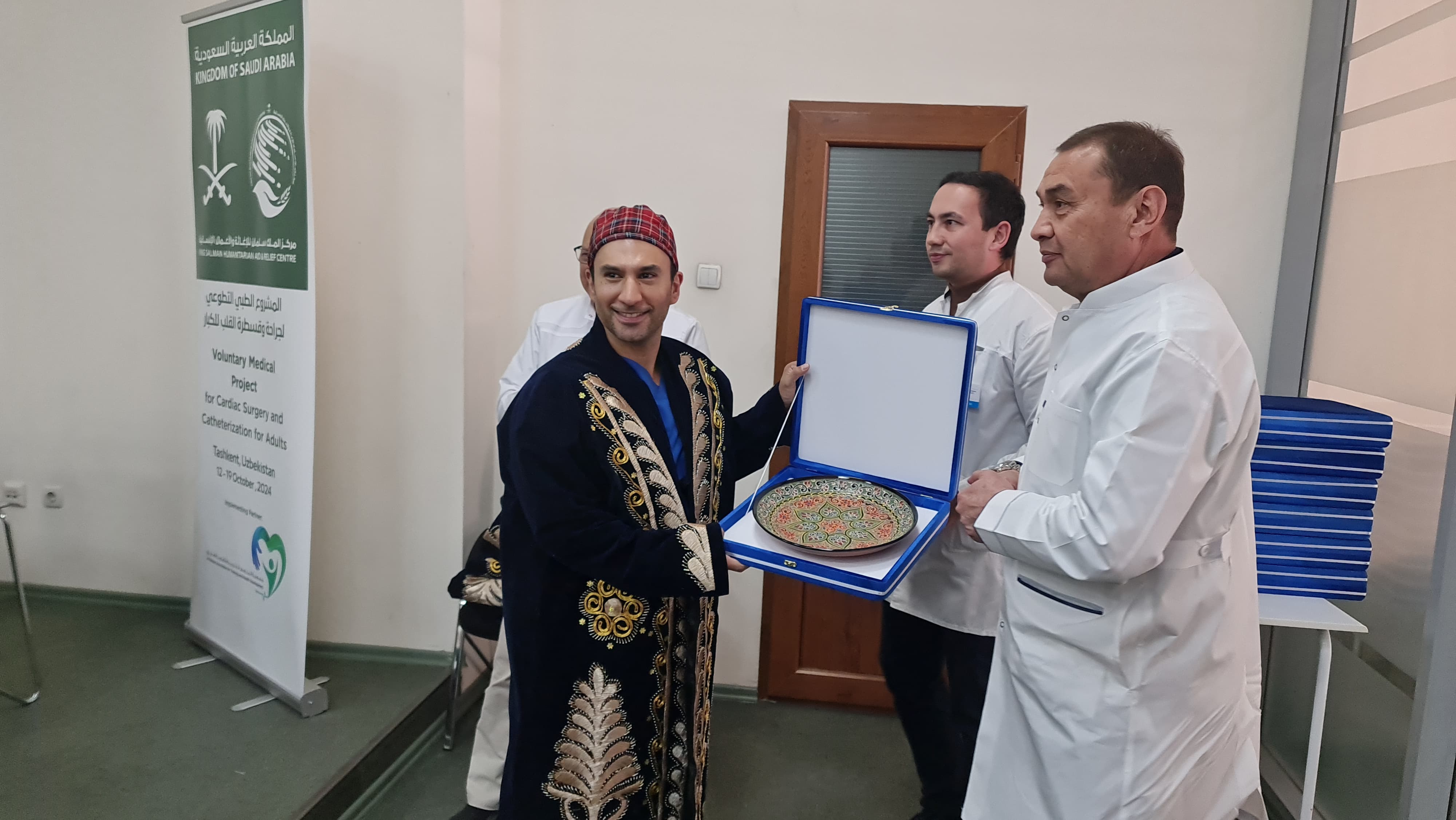 وقد تم تدشين البرنامج الطبي التطوعي لجراحة القلب والقسطرة التداخلية للكبار في جمهورية أوزبكستان خلال مؤتمر في المركز الطبي بالمستشفى الأوزبكي، بمشاركة معالي سفير المملكة العربية السعودية لدى أوزبكستان يوسف صالح الجهراء، ونائب السفير السعودي الأستاذ حمود المطيري، ودافرون سلطانوف نائب وزير الصحة في جمهورية أوزبكستان، وممثل من وزارة الخارجية الأوزبكية، ومدير عام المستشفى الأوزبكي د. سعيد مراد، وعدد من المسؤولين من السفارة السعودية في أوزبكستان.