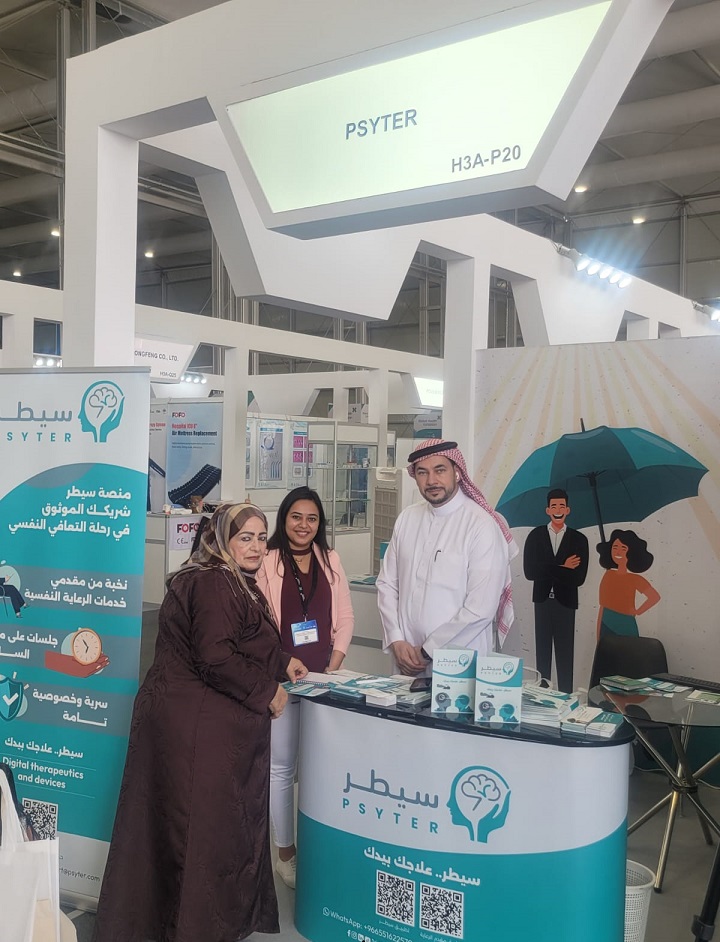 ومن جهة ثانية شاركت منصة "سيطر" أيضا في ملتقى الصحة العالمي السابع وقال الدكتور "ماجد الدسوقي" المشرف على منصة "سيطر": يسعدنا أننا شاركنا في المعرض بتطبيق "سيطر" وهو منصة تهدف إلى تقديم خدمات الصحة النفسية على مستوى عالي لجميع المستفيدين في سرية وخصوصية تامة لمرضى اضطرابات القلق والتقلبات المزاجية والاضطرابات الذهنية والشخصية واضطرابات الطعام والإدمان وغيرها من الاضطرابات النفسية. وهي على مستوى مناطق ومدن المملكة العربية السعودية ولديها أمهر المعالجين ونعمل تحت شعار سيطر علاجك بيدك. ويتم التواصل معنا عبر Psyter.com
