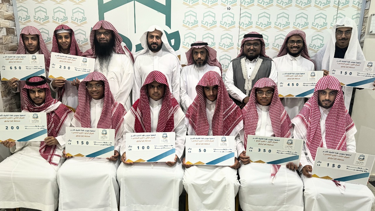 كرم رئيس مجلس إدارة جمعية هدى لتعليم القرآن وعلومه بشرق مكة وضواحيها الأستاذ / محمد حكمي العشر الأوائل الفائزين بمسابقة اقرأ وارتق والتي أقيمت ضمن البرامج الصيفية للجمعية في عدد من المساجد والجوامع بمكة والتي استمرت قرابة 30 يوما شارك فيها أكثر من 150 طالب و 50 حلقة ولله الحمد.