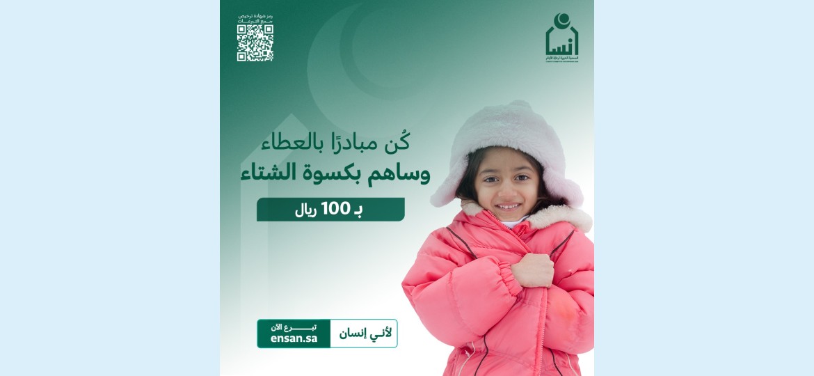 أطلقت الجمعية الخيرية لرعاية الأيتام بمنطقة الرياض "إنسان" حملتها لتأمين كسوة ومستلزمات الشتاء لهذا العام لأبناء وأسر الجمعية في كافة فروعها المنتشرة في منطقة الرياض، والبالغ عددها (21) فرعًا.