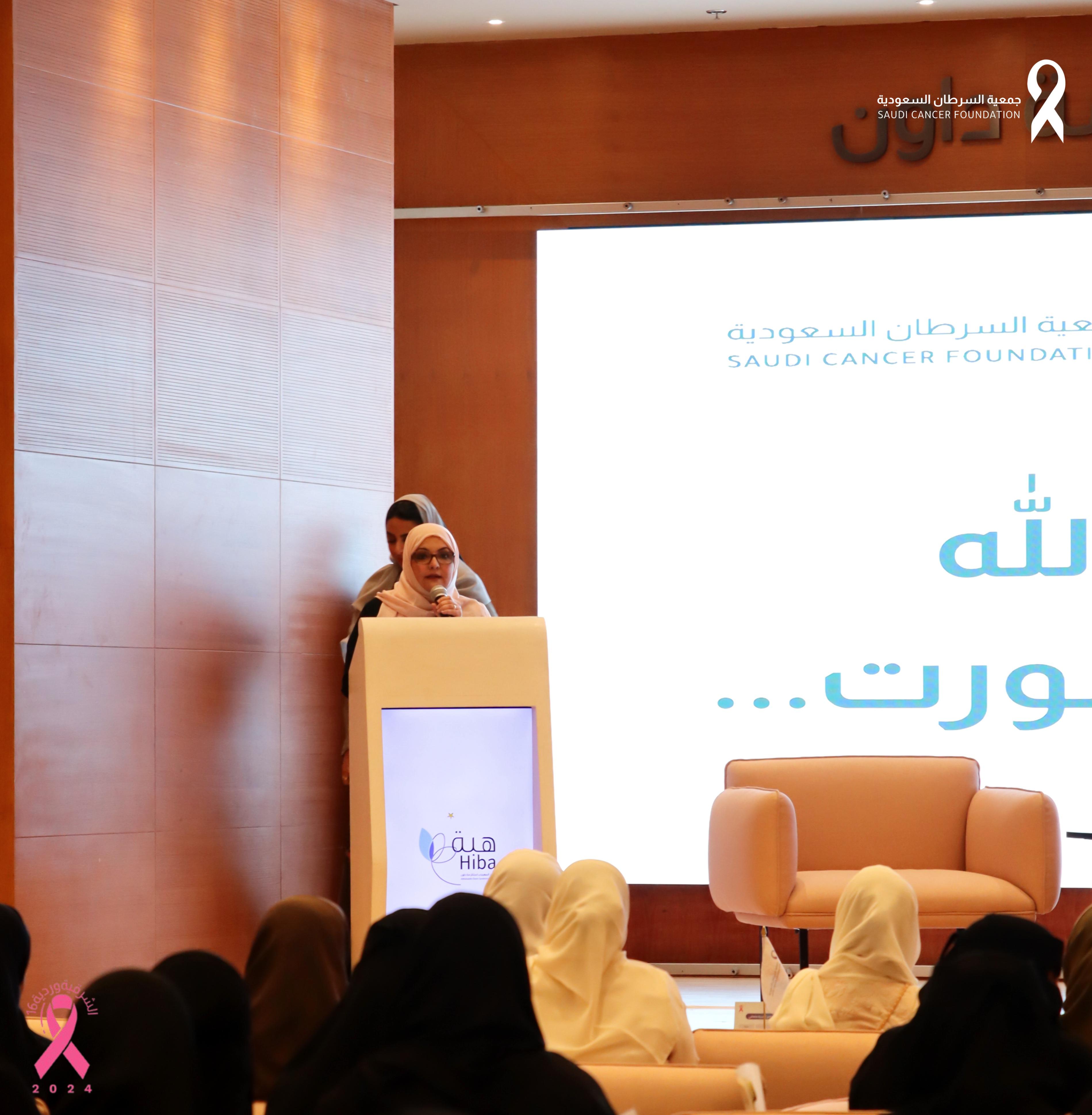 بدأ اللقاء بعرض مرئي لقصة مستفيدة في طور التعافي من سرطان الثدي لمشاركة تجربتها في التغلب على المرض.