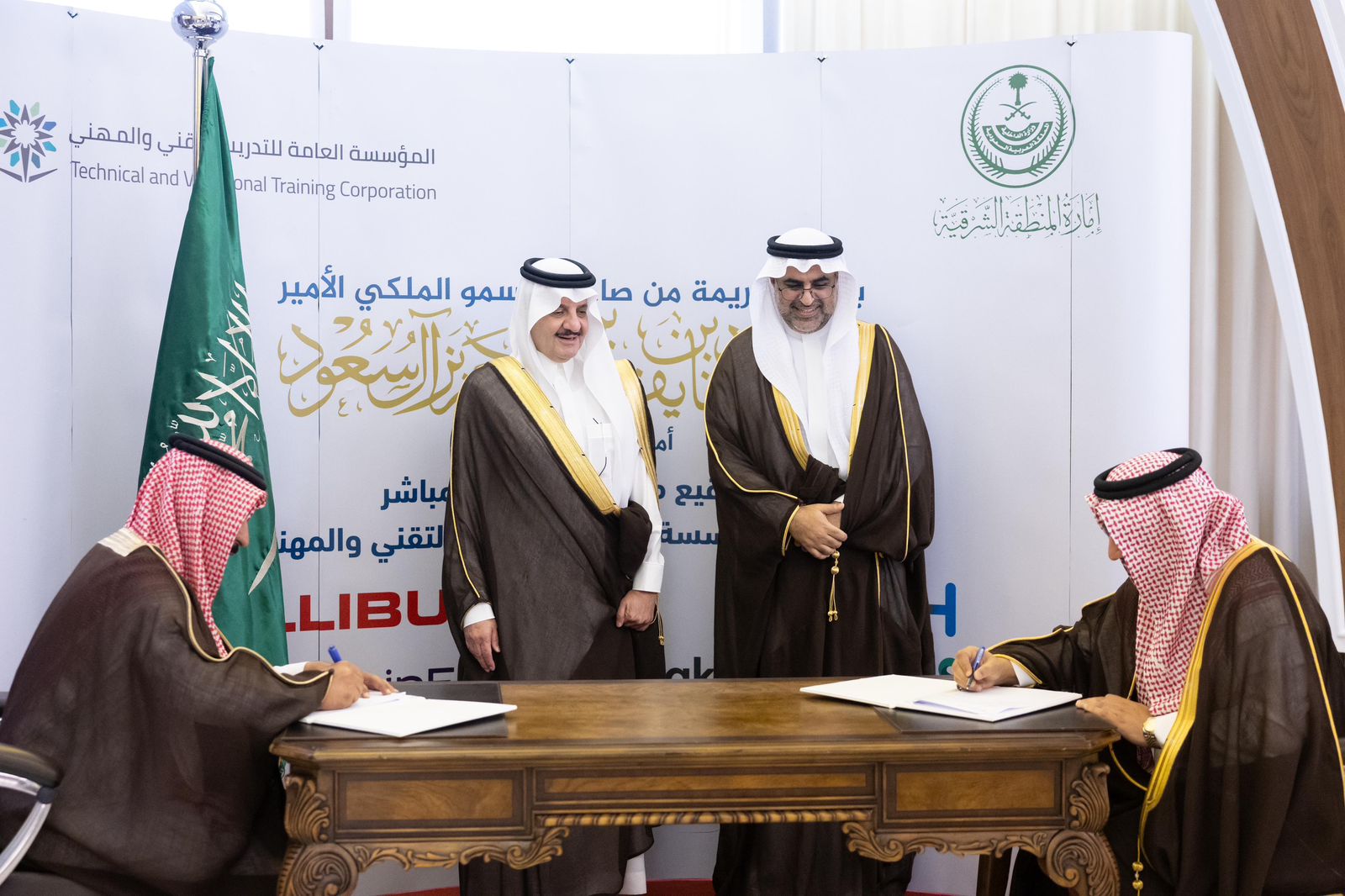 رعى صاحب السمو الملكي الأمير سعود بن نايف بن عبدالعزيز أمير المنطقة الشرقية في ديوان الإمارة اليوم الإثنين توقيع مذكرات تفاهم بين المؤسسة العامة للتدريب التقني والمهني وعدد من شركات القطاع الخاص لتوفير 1400 فرصة وظيفية لخريجي وخريجات التدريب التقني بالمنطقة، بحضور الأستاذ محمد بن صالح المذن المشرف العام على المركز الوطني للشراكات الاستراتيجية بالمؤسسة العامة للتدريب التقني والمهني .