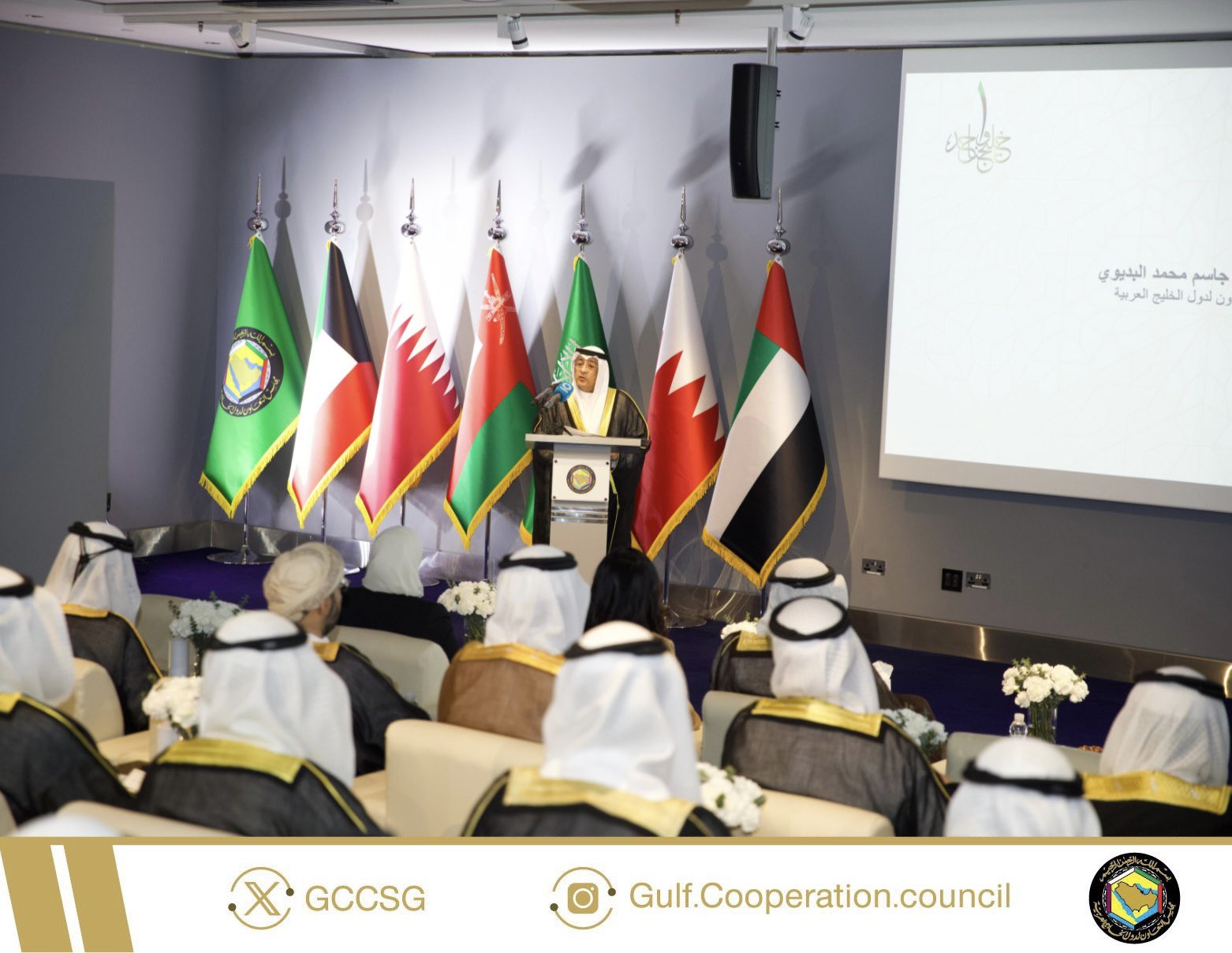 جاء ذلك خلال كلمته في حفل تدشين جناح مجلس التعاون المصاحب لأعمال القمة الخليجية الـ45، والذي أقيم في مركز الشيخ عبدالله السالم الثقافي بدولة الكويت، برعاية وحضور معالي الشيخ محمد عبدالله المبارك الصباح، وزير شؤون الديوان الأميري، وعدد من أصحاب المعالي الوزراء، وأصحاب السعادة سفراء دول المجلس، وقيادات من وزارة الخارجية ووزارة الإعلام في دولة الكويت، وذلك يوم الأربعاء 13 نوفمبر 2024م.