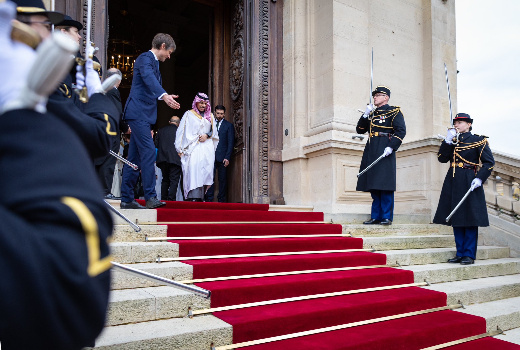 ومن الجانب الفرنسي معالي وزير الثقافة الفرنسية السيدة رشيدة داتي، ومعالي وزير الاقتصاد والمالية الفرنسي السيد أنطوان أرماند، ورئيس الوكالة الفرنسية لتطوير العلا السيد جان إيف لودريان.