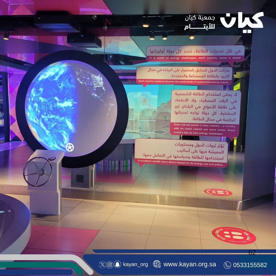 حيث زار مستفيدي جمعية كيان للأيتام المعرض التفاعلي وكان في استقبالهم الأستاذة ميعاد السلوم والأستاذة عبير الرشيدي من إدارة العلاقات العامة والإعلام والتواصل، وتم مصاحبتهم في جولة في المعرض مع الشرح الوافي وإجراء التجارب الفاعلة والهادفة لهم، بحضور المشرفات عن القاعات أيضا.