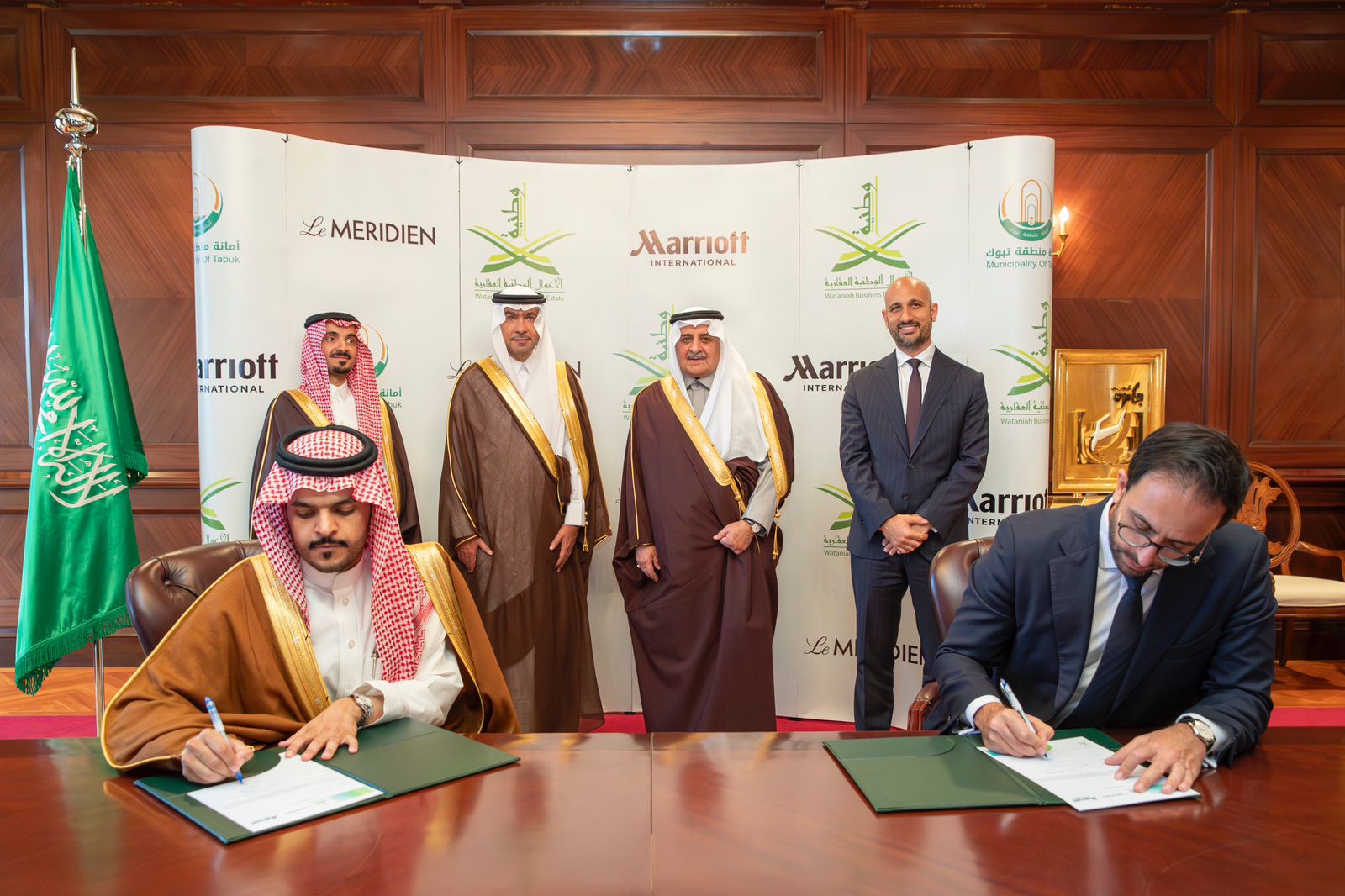 استقبل صاحب السمو الملكي الأمير فهد بن سلطان بن عبدالعزيز أمير منطقة تبوك بمكتبه بالإمارة اليوم، معالي وزير البلديات والإسكان الأستاذ ماجد بن عبدالله الحقيل، الذي يزور المنطقة حاليًا. وجرى خلال اللقاء استعراض خطط الوزارة ومشاريعها التنموية والسكنية التي تقدمها للمستفيدين في مدن ومحافظات منطقة تبوك. وأشاد سمو الأمير فهد بن سلطان بأعمال ومشروعات الوزارة، وإسهاماتها في تنفيذ الخطط الخدمية والتنموية والسكنية بمنطقة تبوك، مثمناً جهود معالي الوزير في دعم المشروعات بالمنطقة. منوهاً سموه بما توليه القيادة الحكيمة - أيدها الله - من اهتمام وعناية بكل ما يخدم المواطن من المشروعات التنموية . عقب ذلك شهد سمو أمير منطقة تبوك بحضور معالي وزير البلديات والأسكان توقيع اتفاقية بين شركة الأعمال الوطنية ( مشعل بن عبدالله الشريع وأخوانه ) وشركة ماريوت العالمية لتشغيل فندق خمس نجوم بعلامة " لو ميريديان " ضمن مشروع جوهرة ساس في مدينة تبوك الذي يتكون من معارض تجارية ومركز طبي لجراحة اليوم الواحد . ومبنى إداري واخر مكتبي، وقاعة مؤتمرات واحتفالات تتسع لأكثر من 600 شخص بالإضافة لحدائق ونوافير مائية مما يتيح خلق العديد من فرص العمل لأبناء وبنات المنطقة .